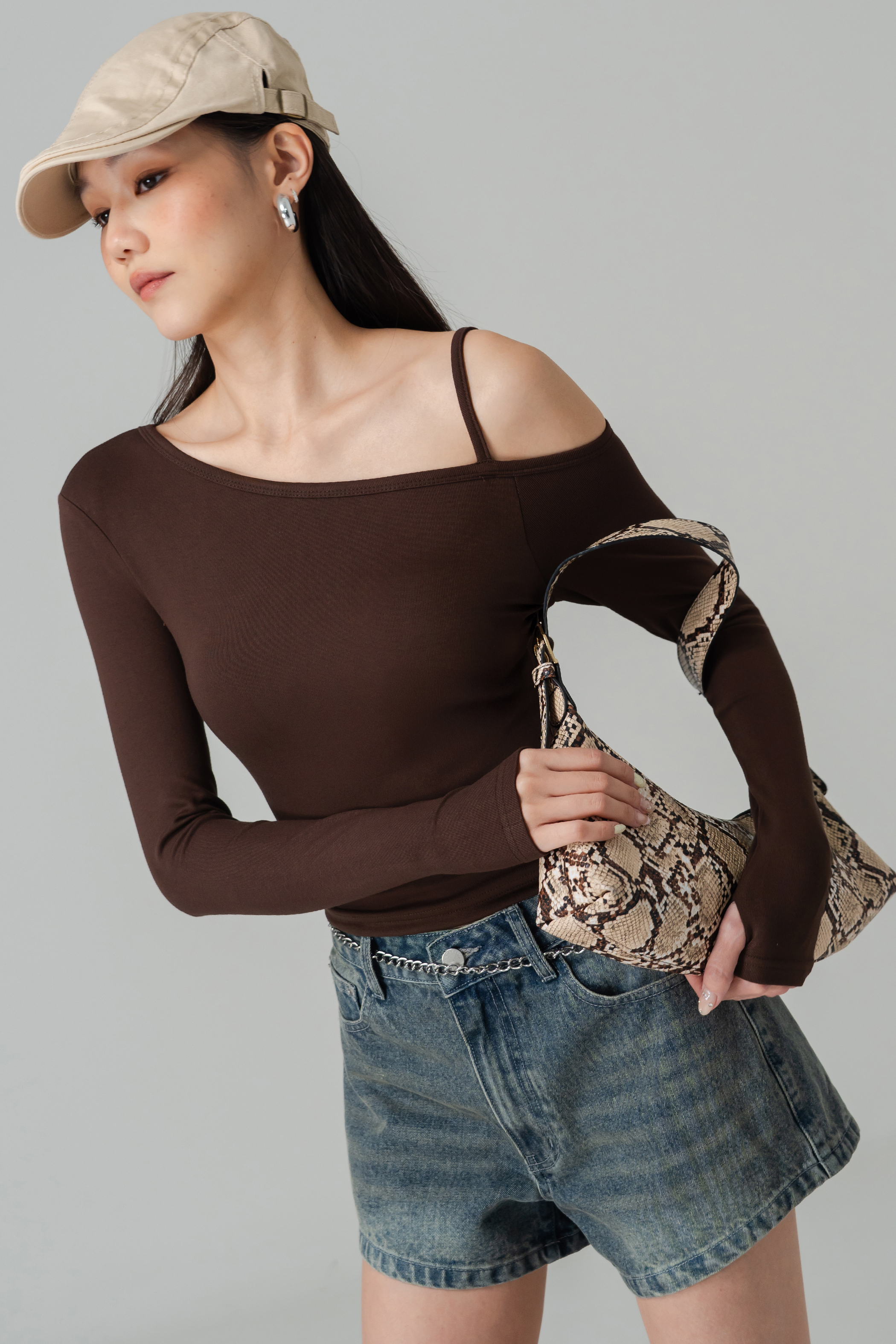 Effortless with a hint of edge, the Anchor Off Shoulder Padded Top balances comfort and style. The off-shoulder silhouette with a single strap adds modern asymmetry, while long sleeves and padded support keep it cozy yet chic. Perfect for relaxed days or easy styling that feels effortlessly polished.