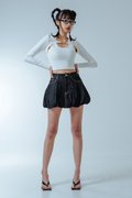 A mini with personality to spare. This bubble-shaped denim skirt flares softly with a festive spirit, while the back-pocket stitching adds a wink of detail for those who look closer. Playful yet polished, it is the skirt that turns a simple moment into something a little more memorable.