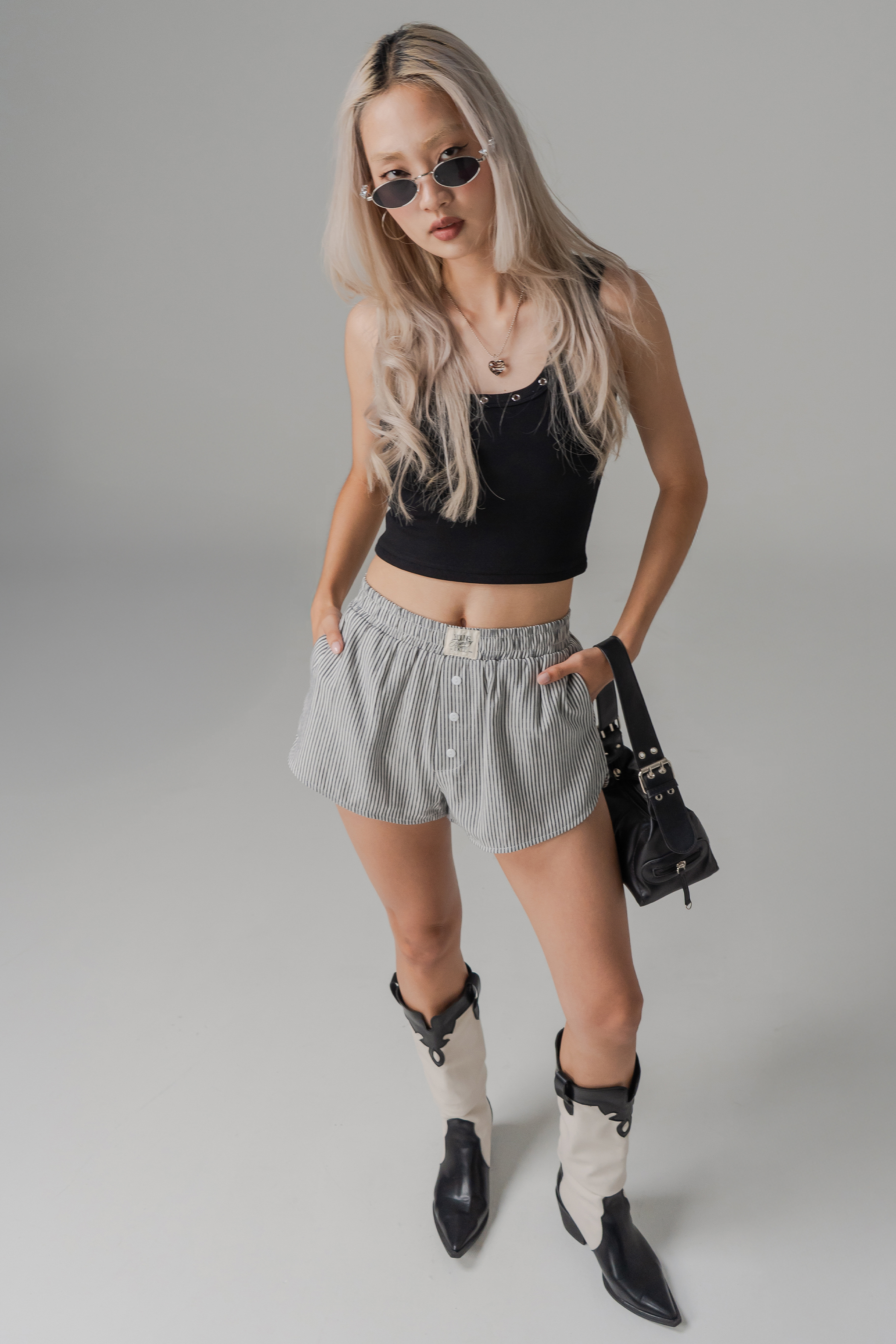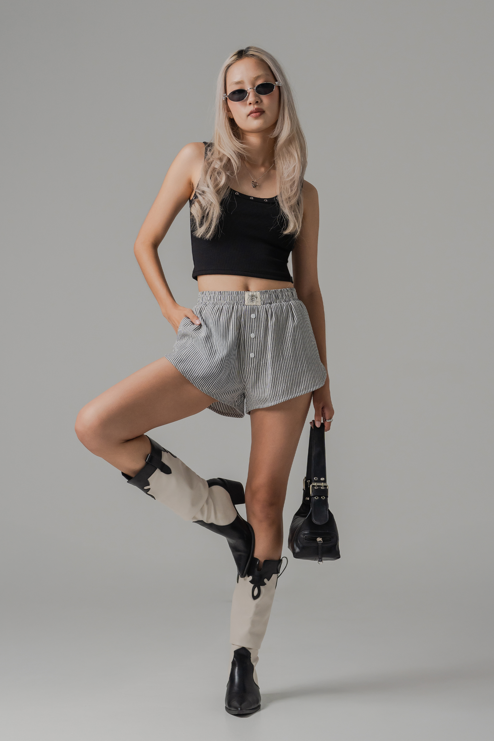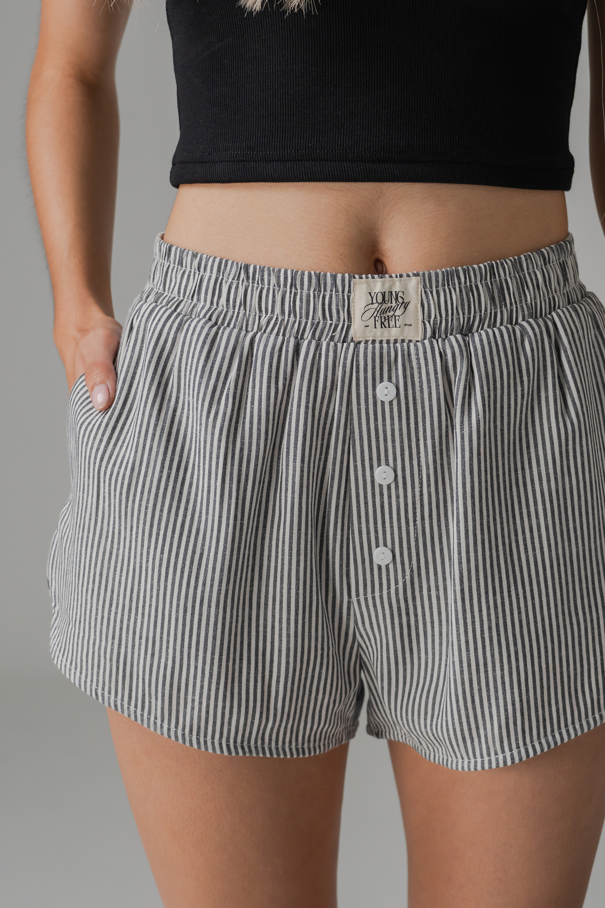 Boxer Relax Lounge Button Shorts in Black Stripes