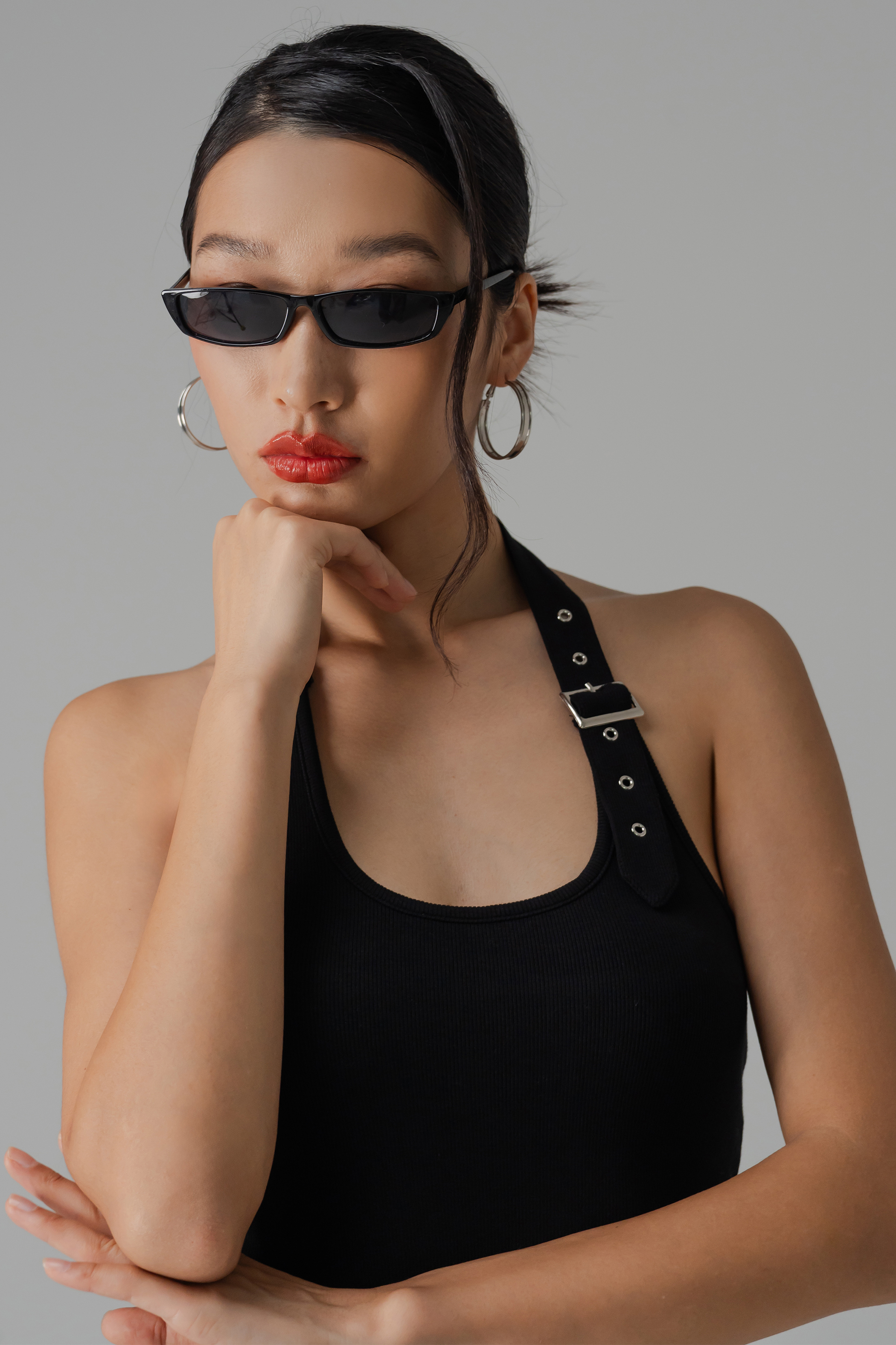 Sleek with a touch of attitude, the Catch Buckle Halter Top is all about clean lines and confident ease. The halter neckline and backless cut keep it light and modern, while padding offers fuss-free support. Finished with a side buckle detail, it’s a go-to piece for casual days that still call for a little statement.