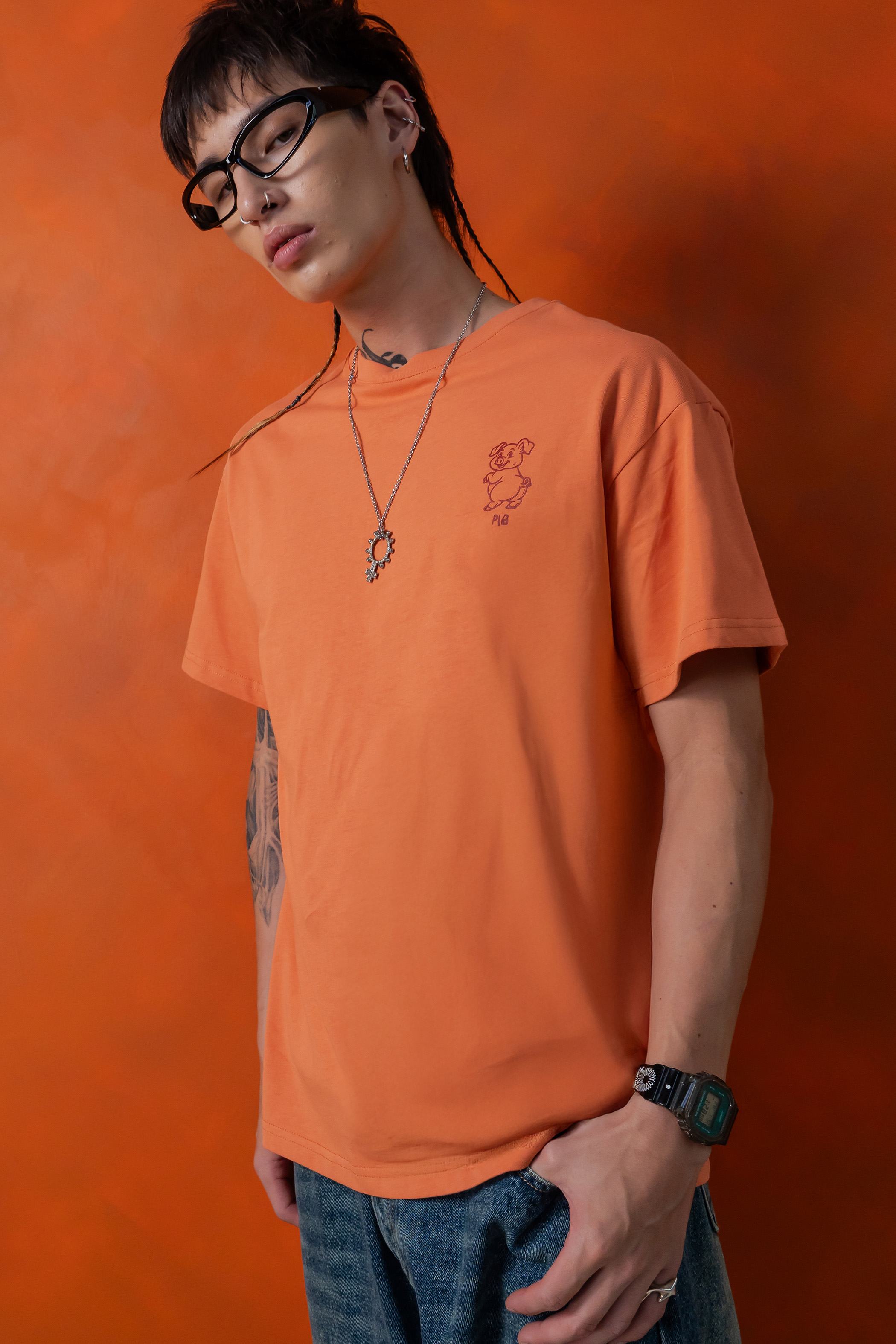 Cheeky Pig Tee in Tangerine