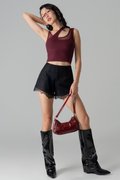 Delicate yet striking, the Coy Lace Tailored Shorts layer airy lace over a tailored flare for an elevated mini silhouette. Lightly structured, they move with a gravity-defying grace. A versatile essential that shines in every constellation of style.