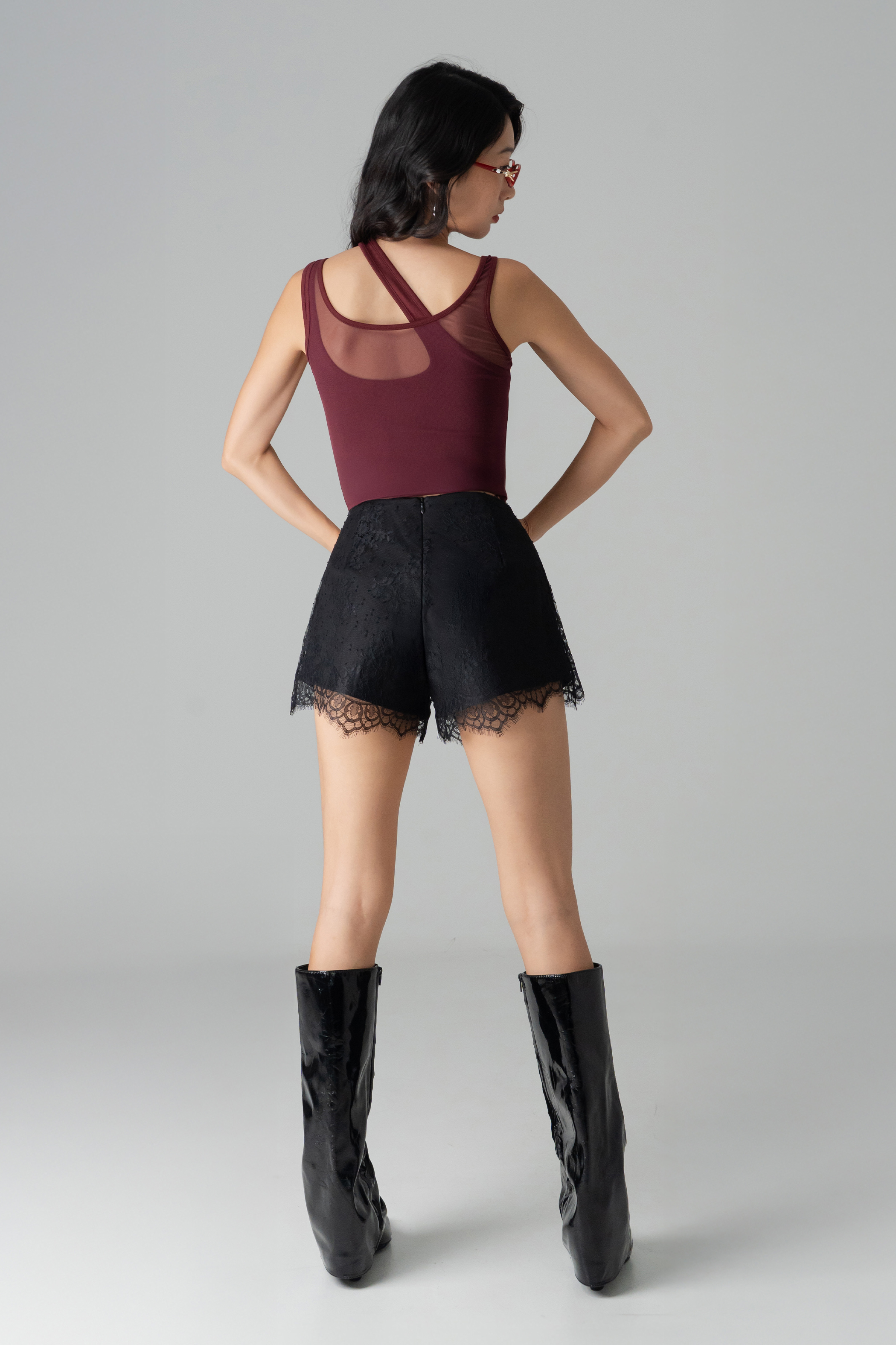 *Please note that Coy Lace Tailored Shorts in Black measures 0.5 " shorter.
