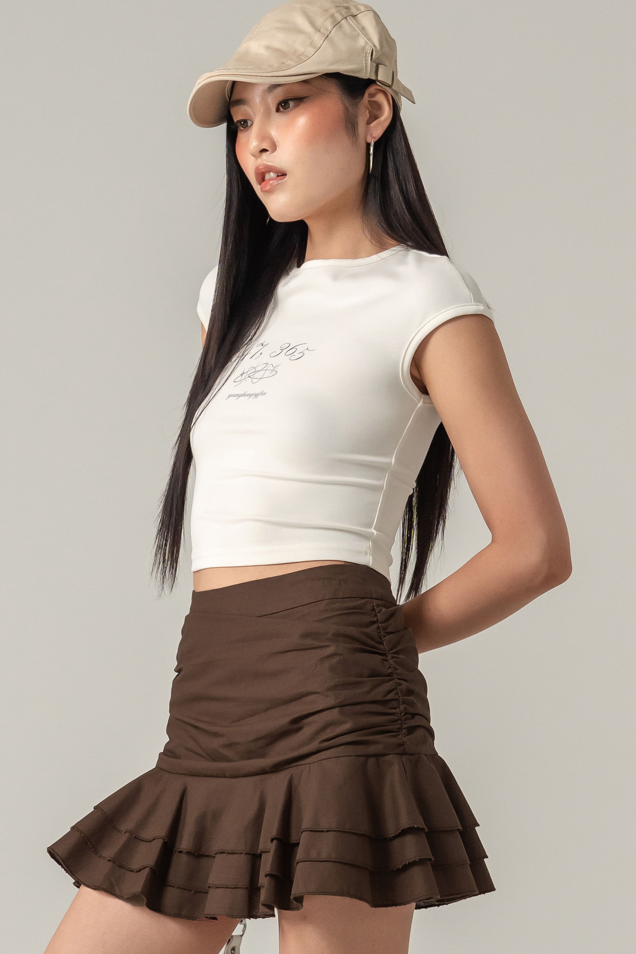 Cupcakes Linen Ruched Skirt in Cocoa Brown