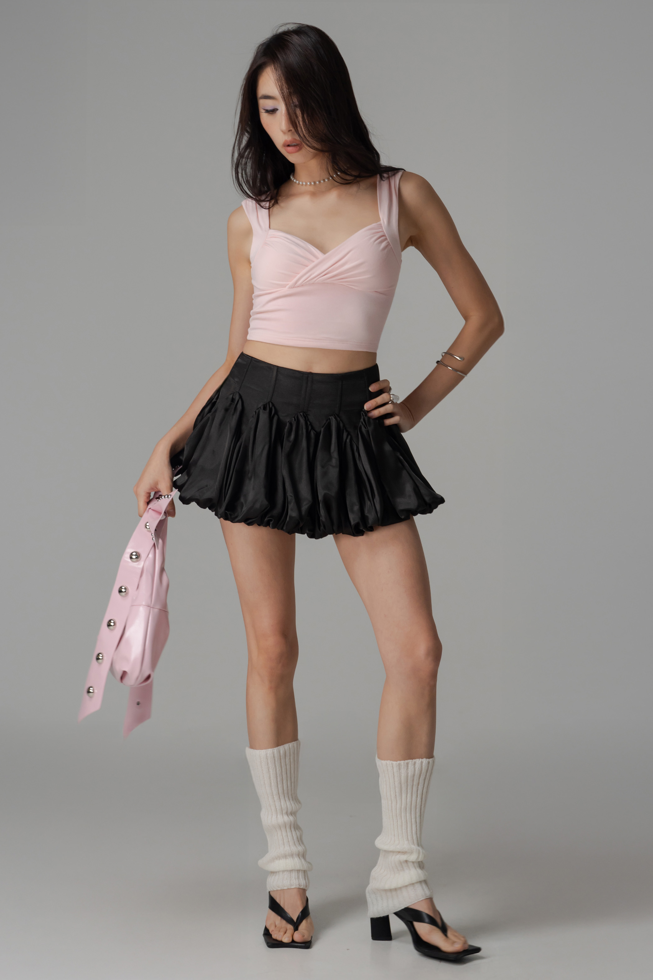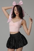 The Dance Off Bubble Skirt is a playful essential featuring a fitted waist and flared mini silhouette with a voluminous bubble shape. Crafted in smooth satin, it offers both comfort and a subtle shine that elevates any look. Styled as a co-ord with the The Groove Corset Tube Top, it creates a chic, feminine outfit that feels effortlessly bold and special.