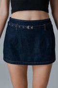Structured yet playful, the Dart Denim Belted Skirt features a flared mini cut that moves with ease. A keyhole belt detail adds a subtle focal point, giving the classic denim skirt a refined update. Wear it solo or styled with the Charge Denim Halter Top for a clean, coordinated look.
