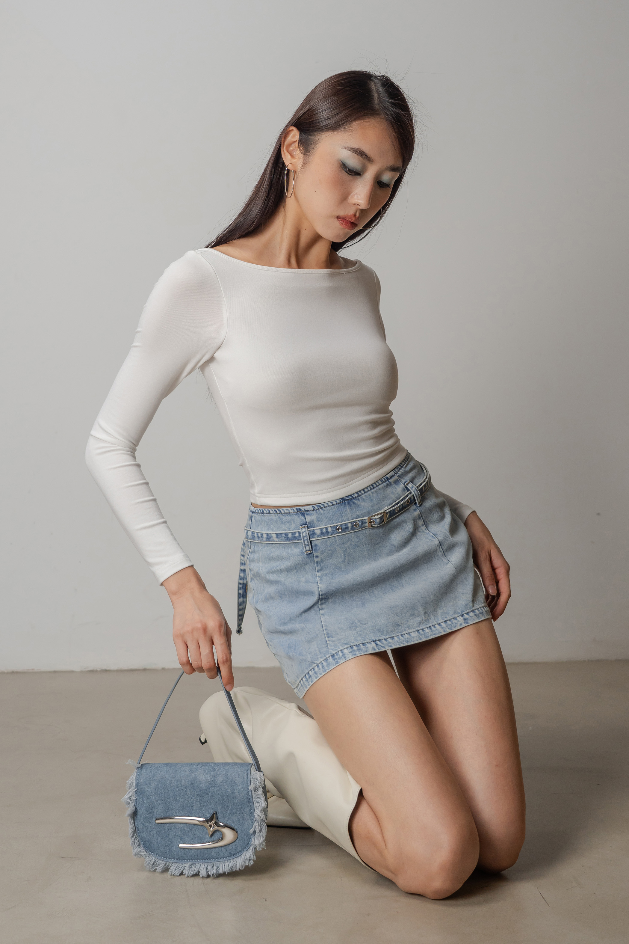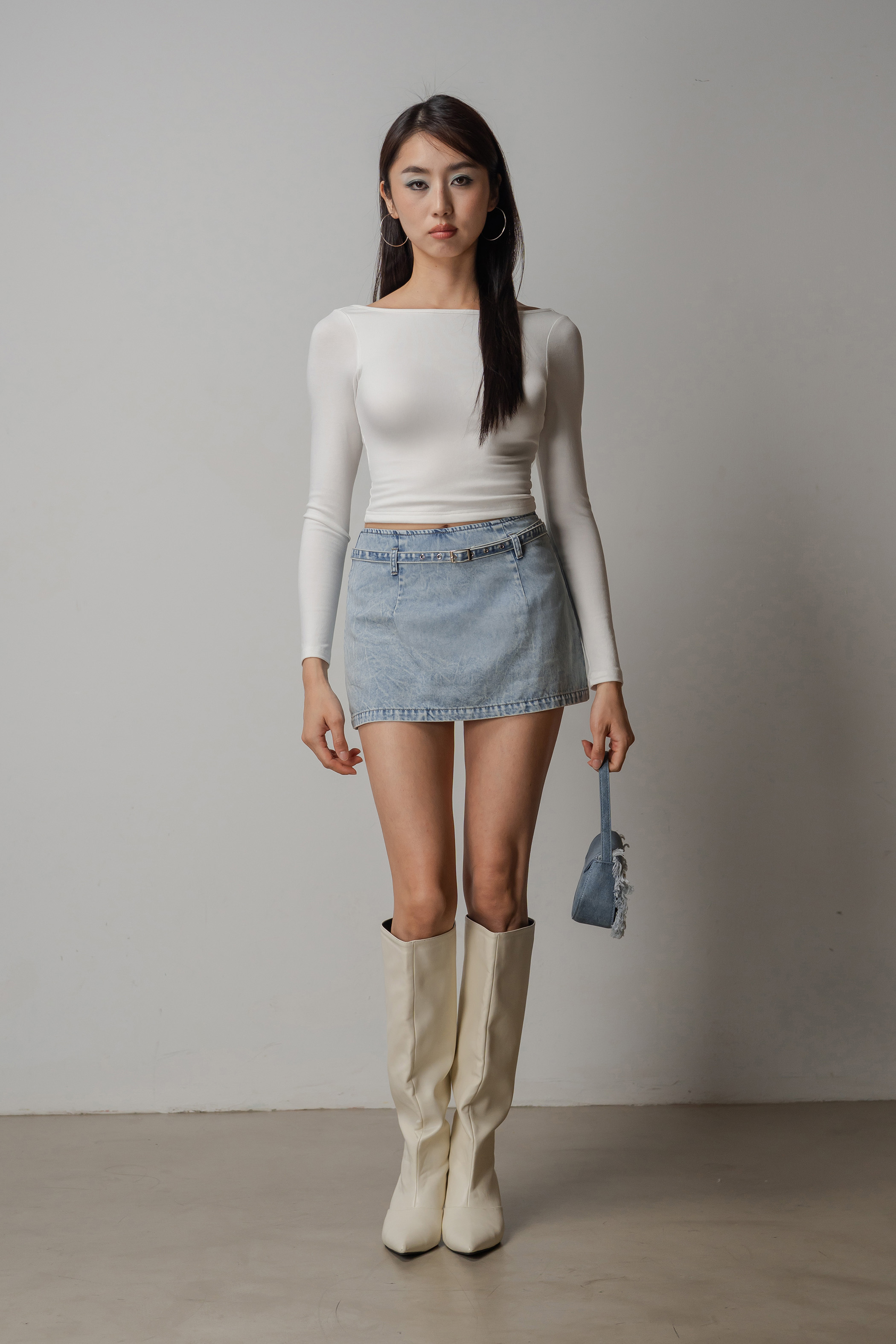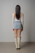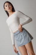 Structured yet playful, the Dart Denim Belted Skirt features a flared mini cut that moves with ease. A keyhole belt detail adds a subtle focal point, giving the classic denim skirt a refined update. Wear it solo or styled with the Charge Denim Halter Top for a clean, coordinated look.