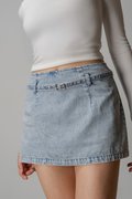 Dart Denim Belted Skirt In Light Wash