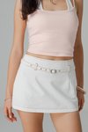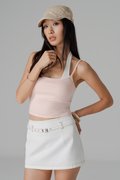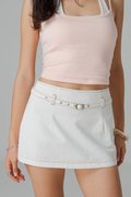 Dart Denim Belted Skirt in Sand