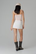 Structured yet playful, the Dart Denim Belted Skirt features a flared mini cut that moves with ease. A keyhole belt detail adds a subtle focal point, giving the classic denim skirt a refined update. Wear it solo or styled with the Charge Denim Halter Top for a clean, coordinated look.