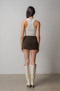 Dart Denim Belted Skirt In Vintage Cocoa