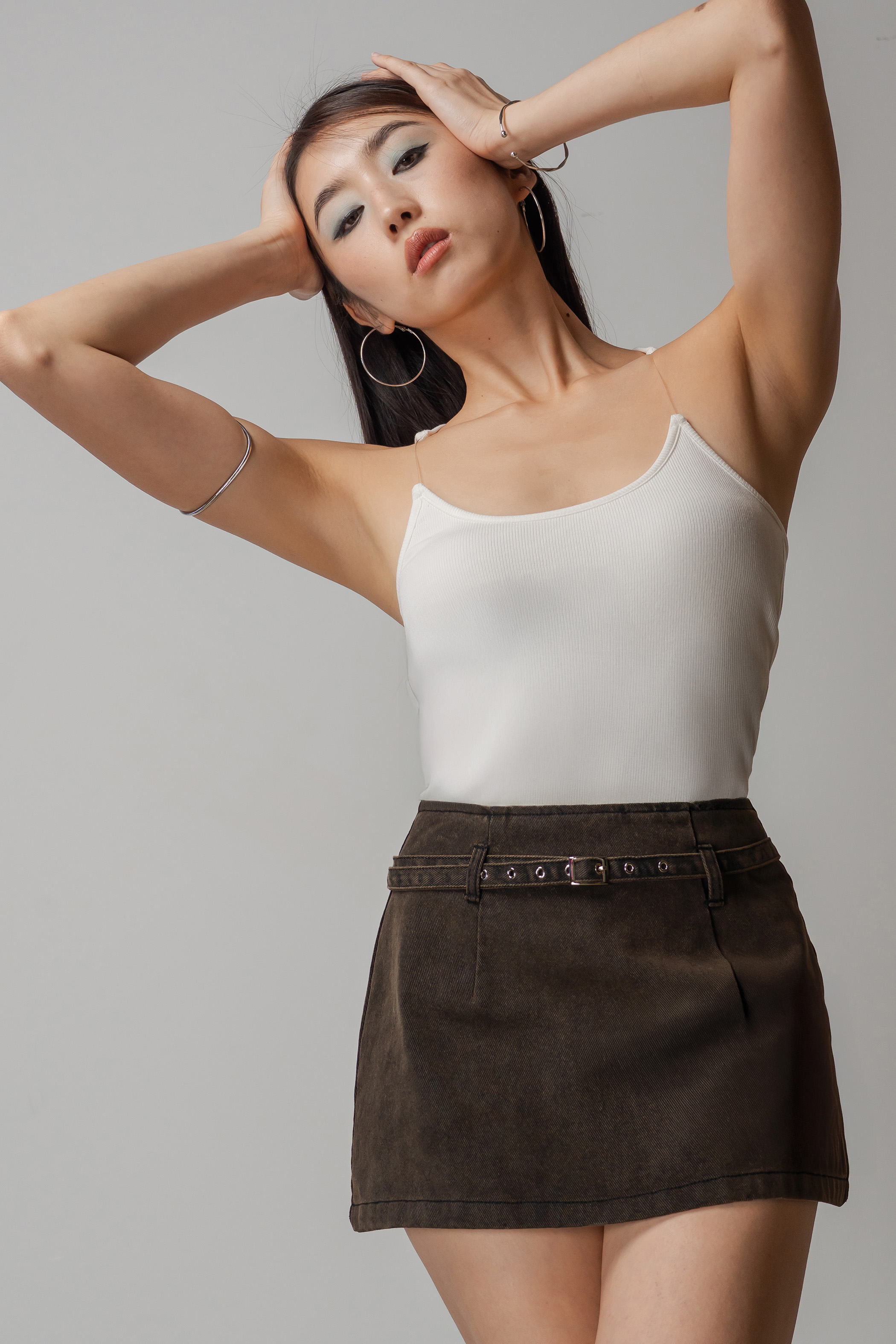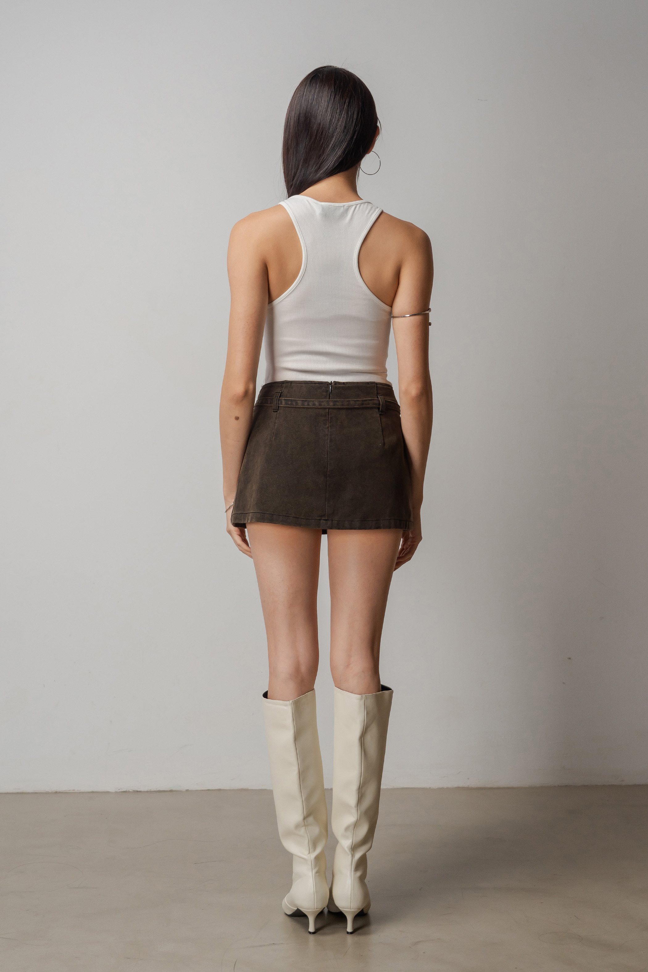 Structured yet playful, the Dart Denim Belted Skirt features a flared mini cut that moves with ease. A keyhole belt detail adds a subtle focal point, giving the classic denim skirt a refined update. Wear it solo or styled with the Charge Denim Halter Top for a clean, coordinated look.