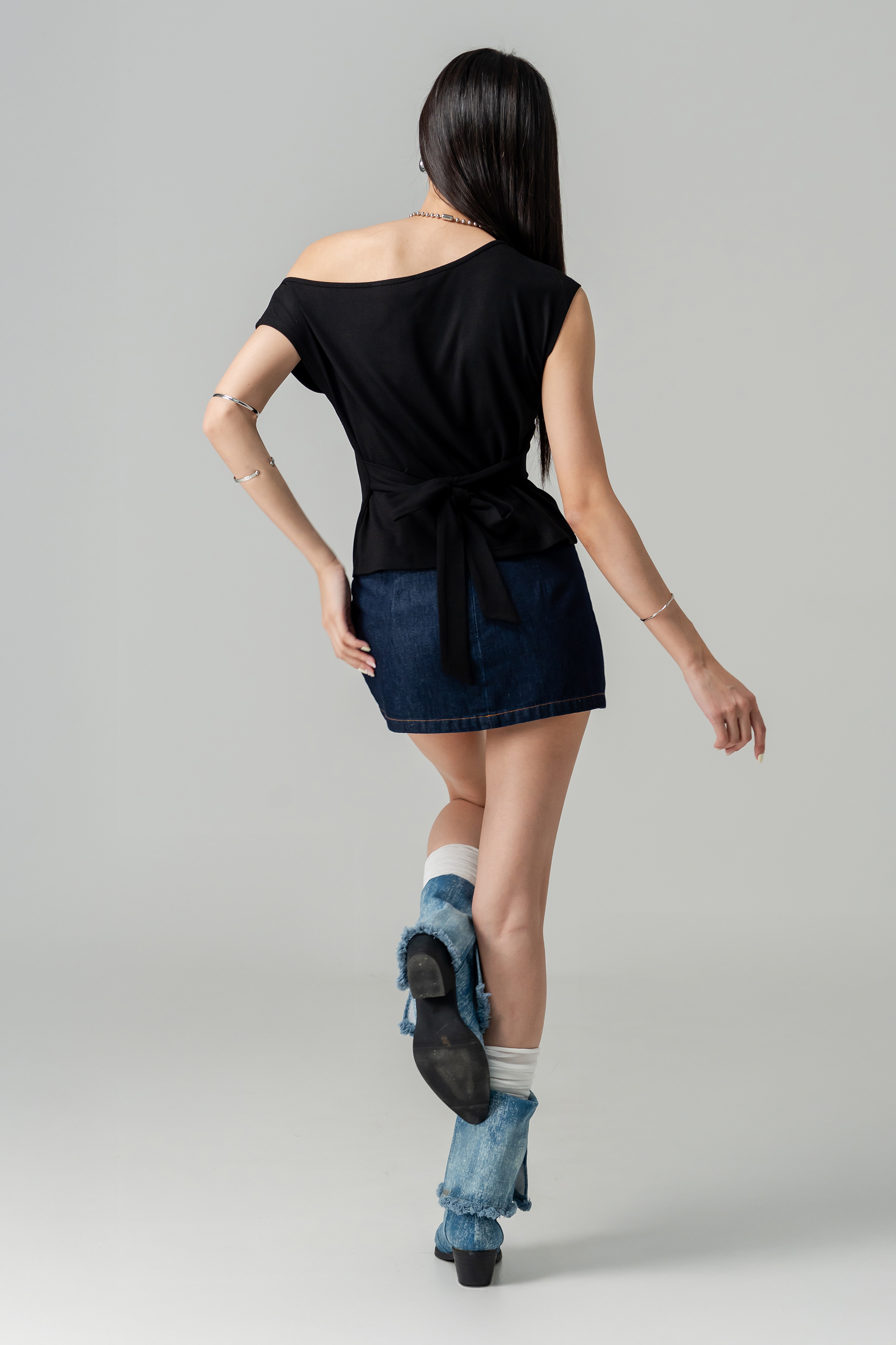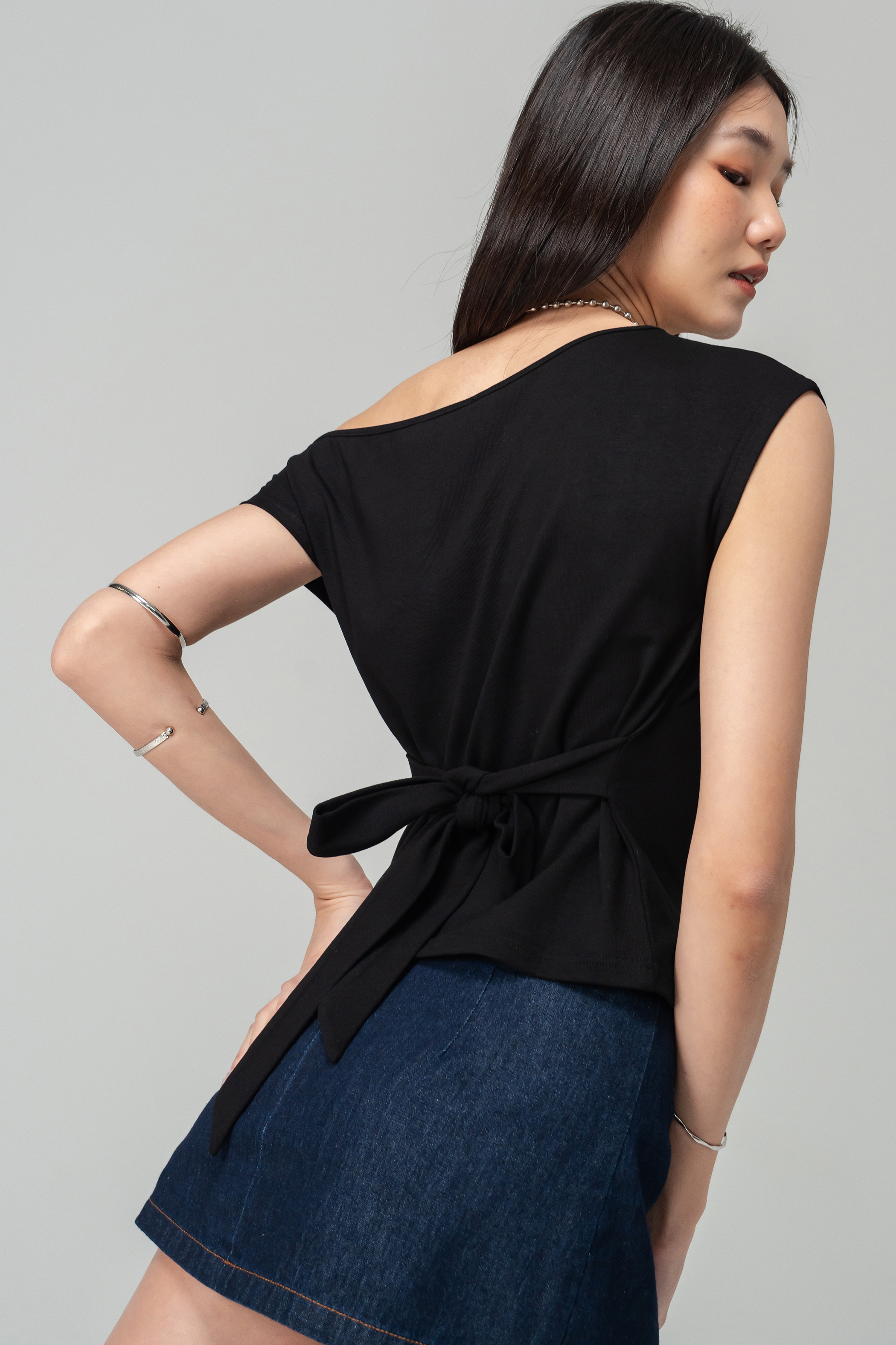 Decompress Tie Off Shoulder Top in Black