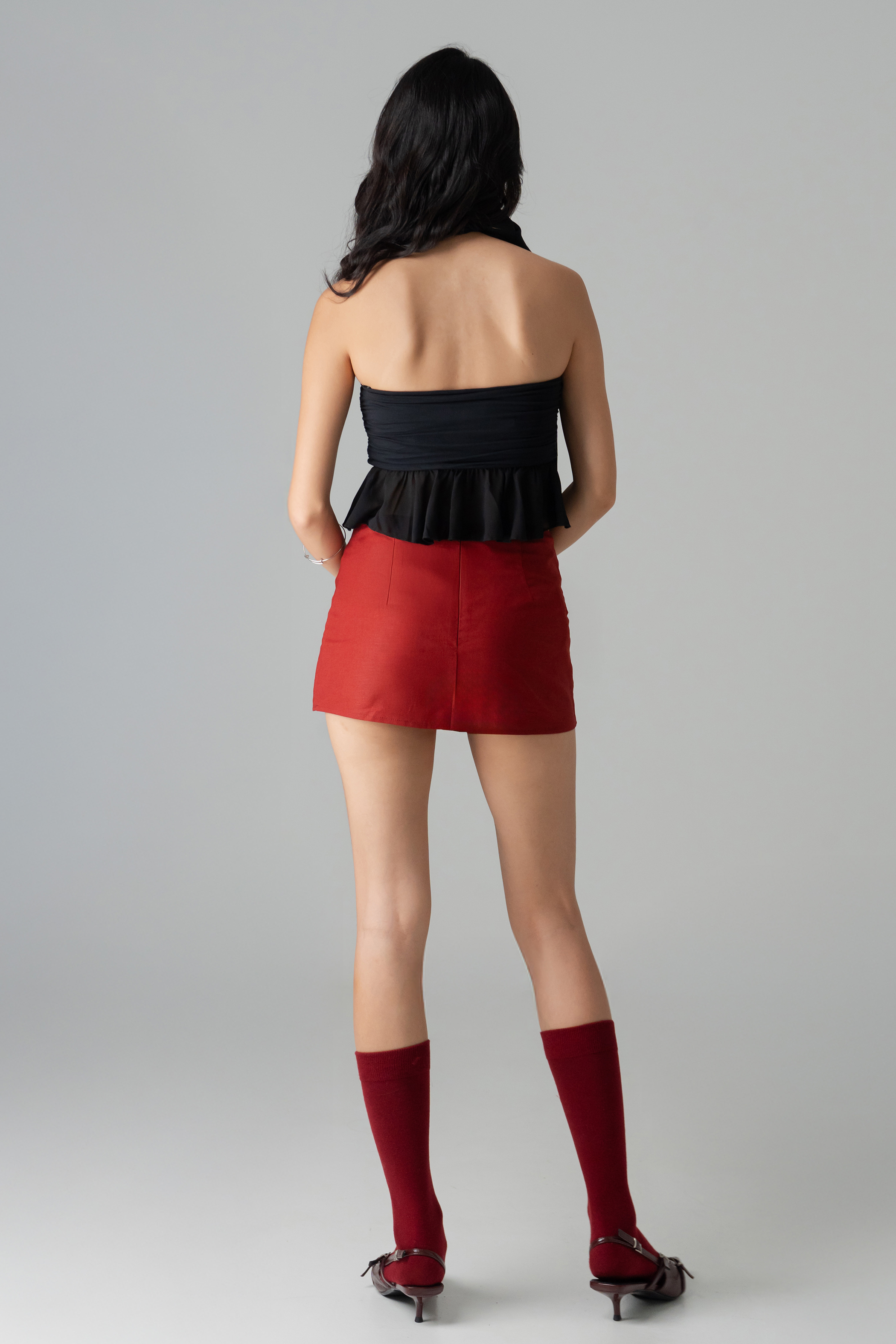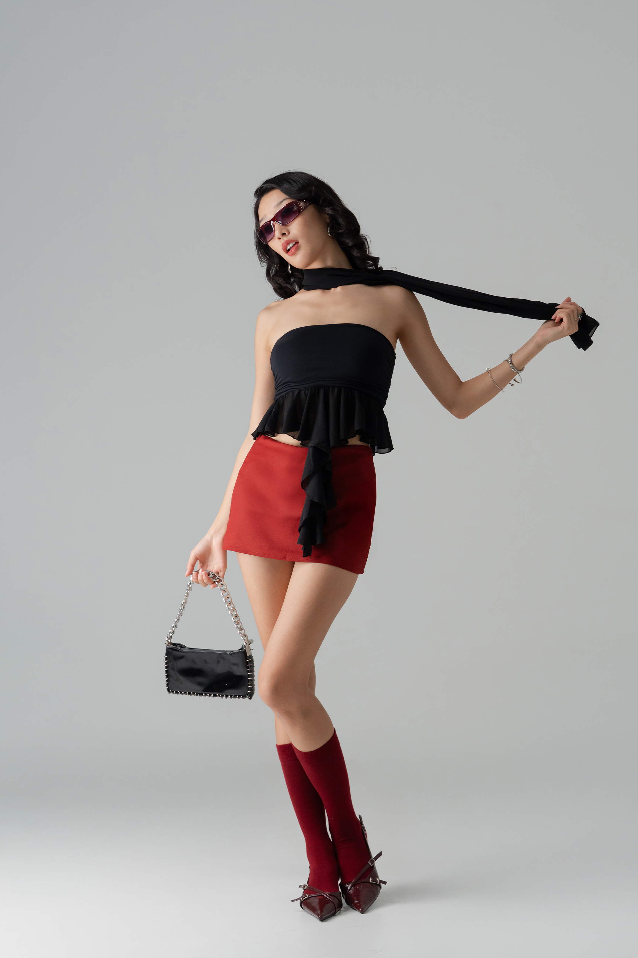 Ethereal and bold, the Delicate Chiffon Scarf Top pairs an off-shoulder mini with a flowing chiffon scarf overlay. Subtle ruffle trims and built-in padding add airy structure, making it feel weightless yet intentional. A celestial twist on a modern romantic essential.