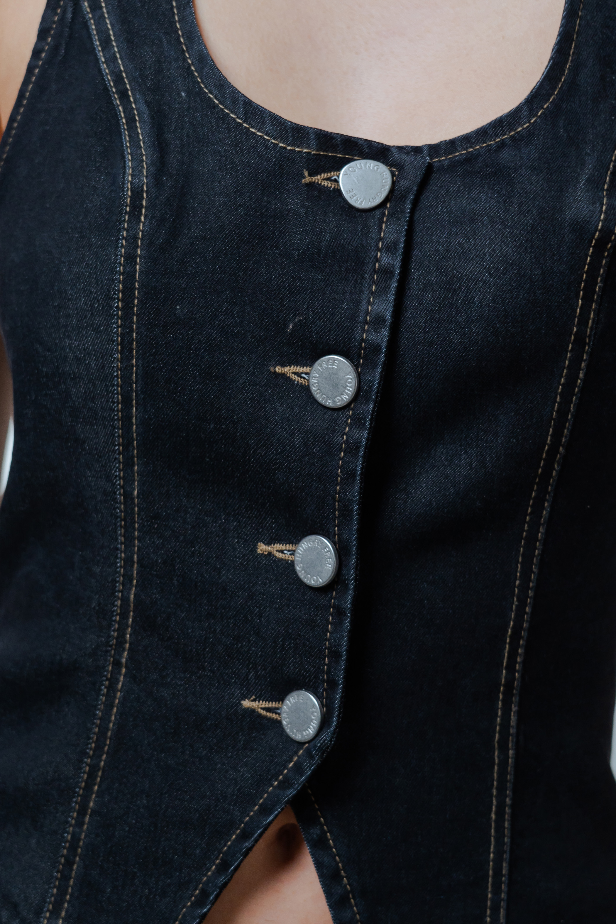 Dippin' Denim Vest Top in Grey Wash with Brown Threads