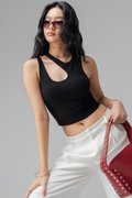 Sleek and unfussy, the Divide Cut Out Top brings a modern twist to an everyday basic with its sharp front cut-out and fitted silhouette. The sleeveless, padded design keeps things comfortable while giving you just the right amount of structure. Easy to dress up or pair with casual staples — an essential that adds quiet edge to any lineup.