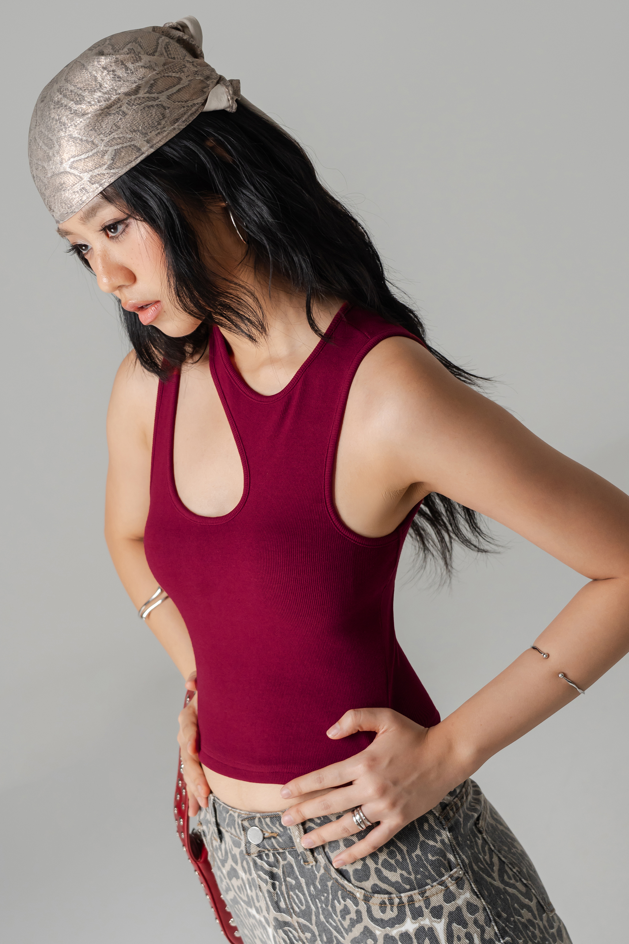 Sleek and unfussy, the Divide Cut Out Top brings a modern twist to an everyday basic with its sharp front cut-out and fitted silhouette. The sleeveless, padded design keeps things comfortable while giving you just the right amount of structure. Easy to dress up or pair with casual staples — an essential that adds quiet edge to any lineup.