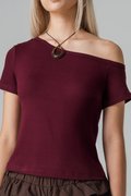 Ease Up Off Shoulder Top in Wine