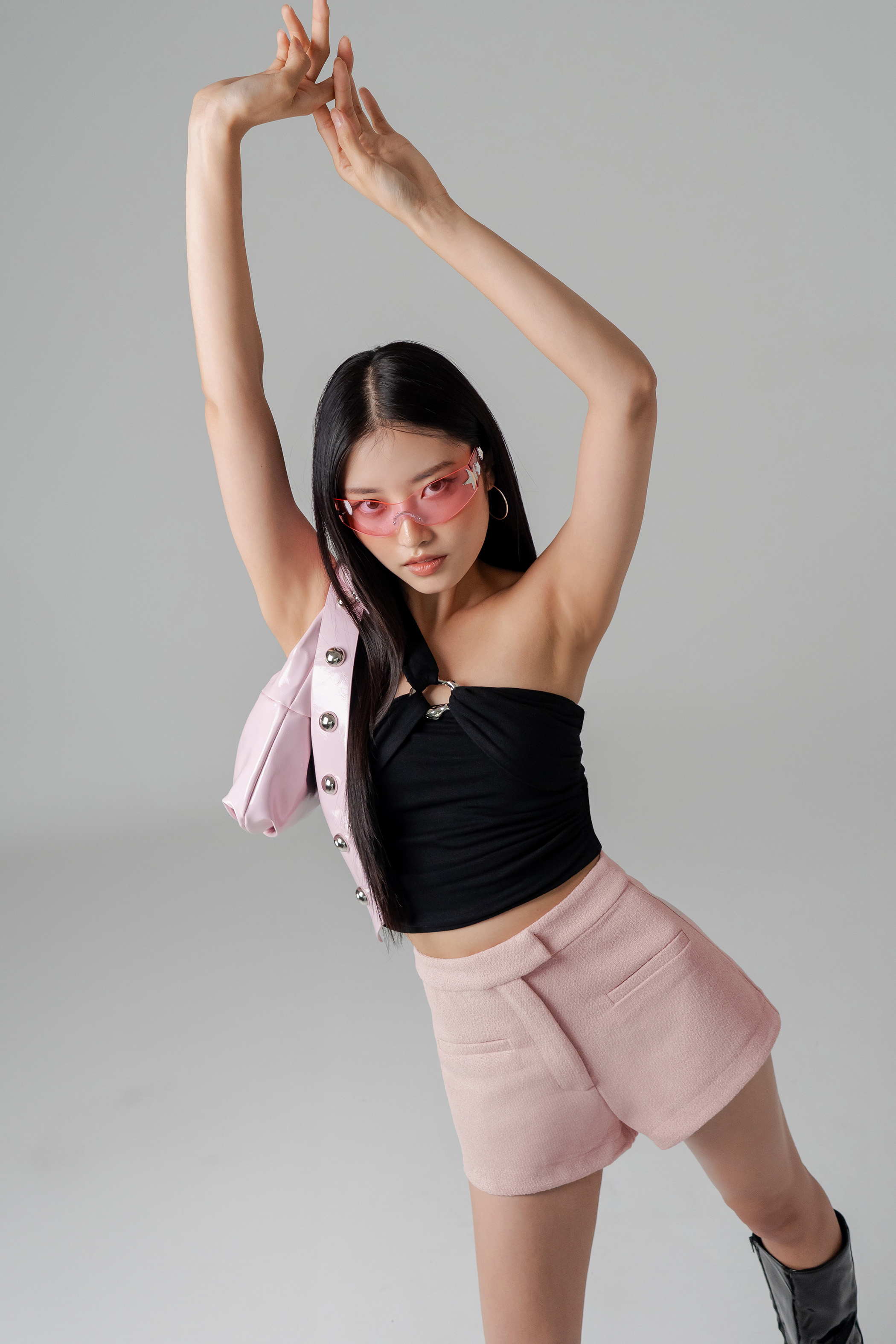 Enclave Tweed Tailored Shorts in Milkshake Pink