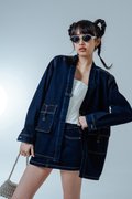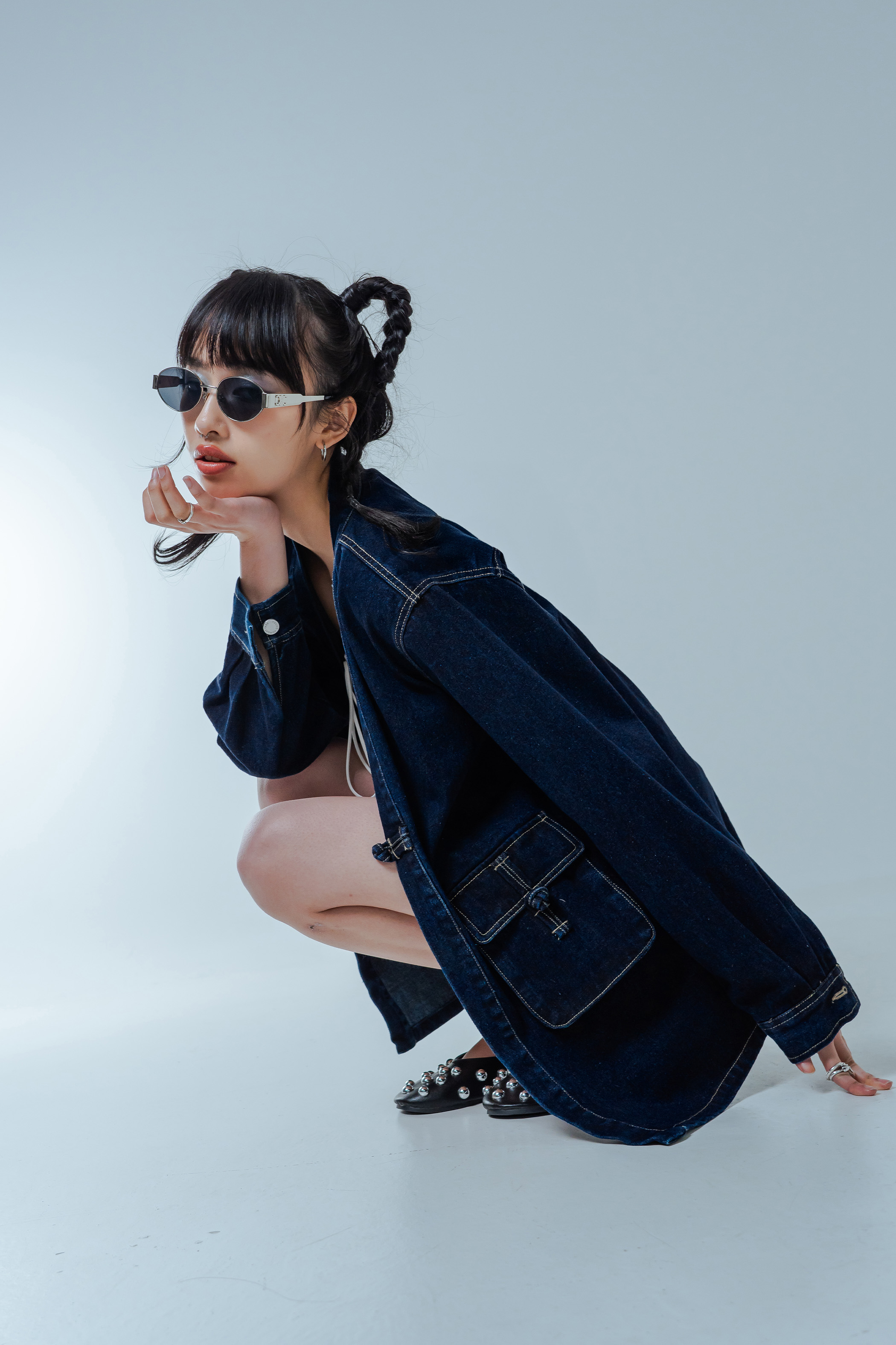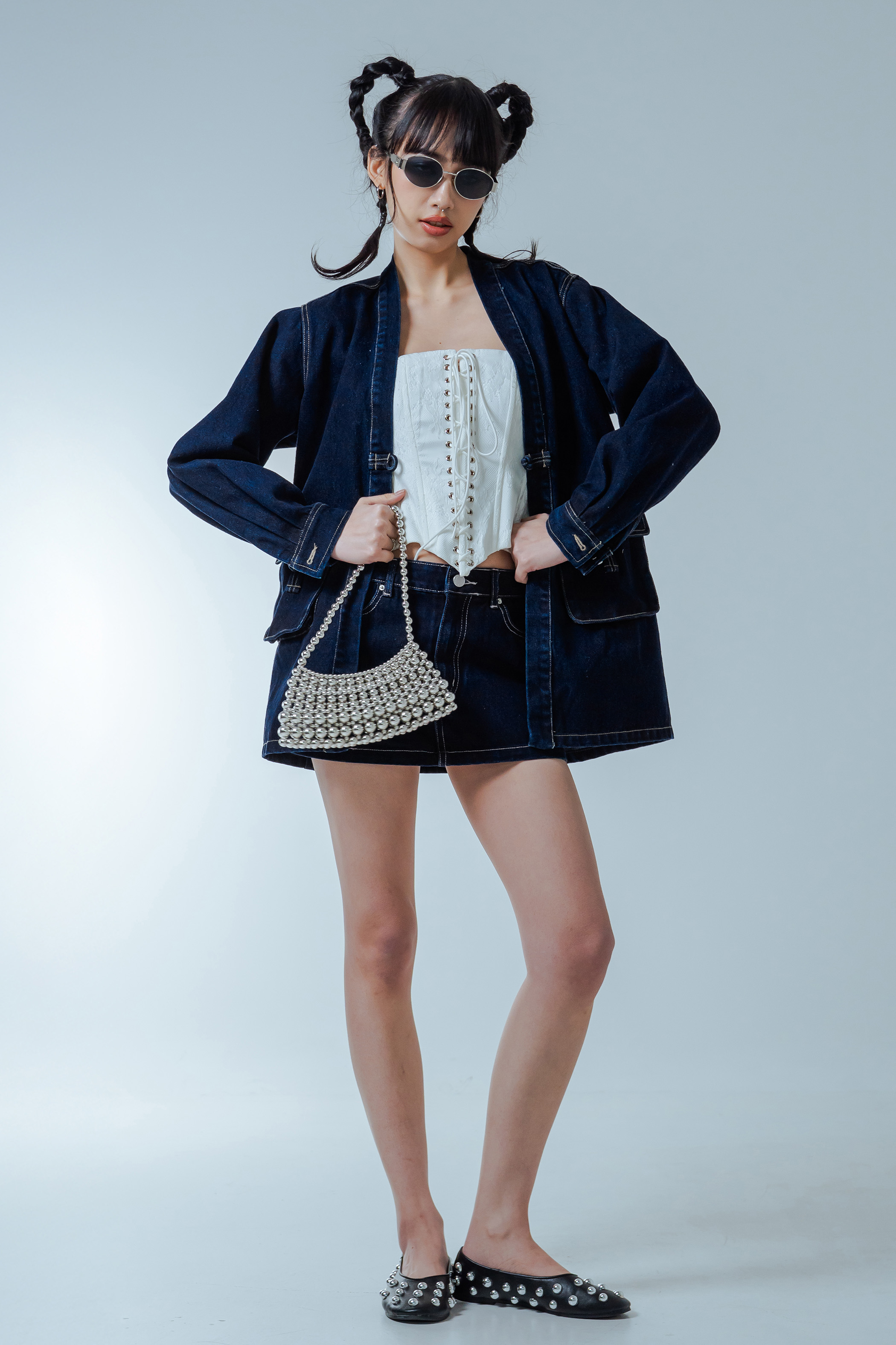 A denim jacket designed with a gentle, oversized shape that feels relaxed yet polished. The roomy cut offers comfortable ease, while the front pockets add a practical touch to the overall look. Simple, versatile, and thoughtfully structured, it is the kind of layer that works seamlessly with pieces you already own.