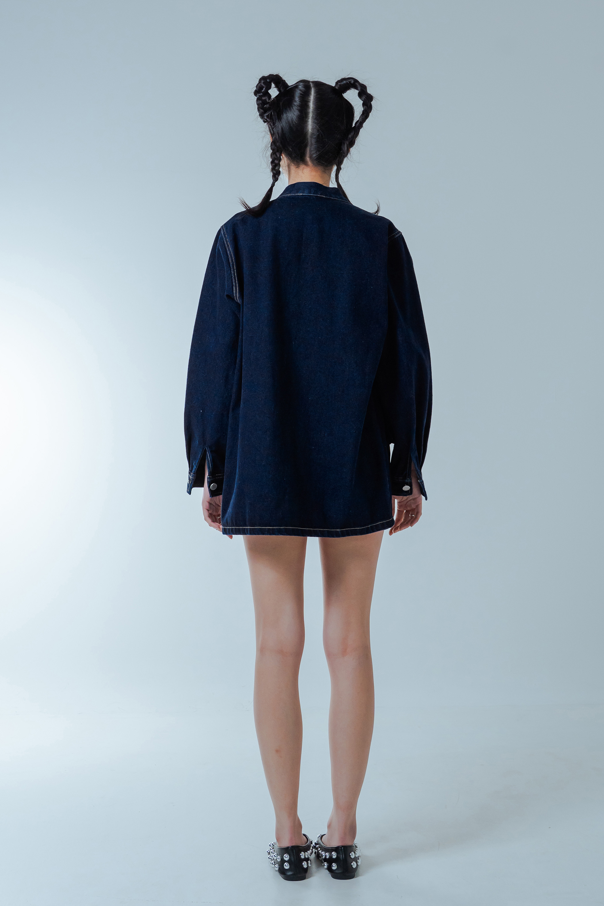 Eternity Denim Oversized Jacket in Indigo with Brown Threads