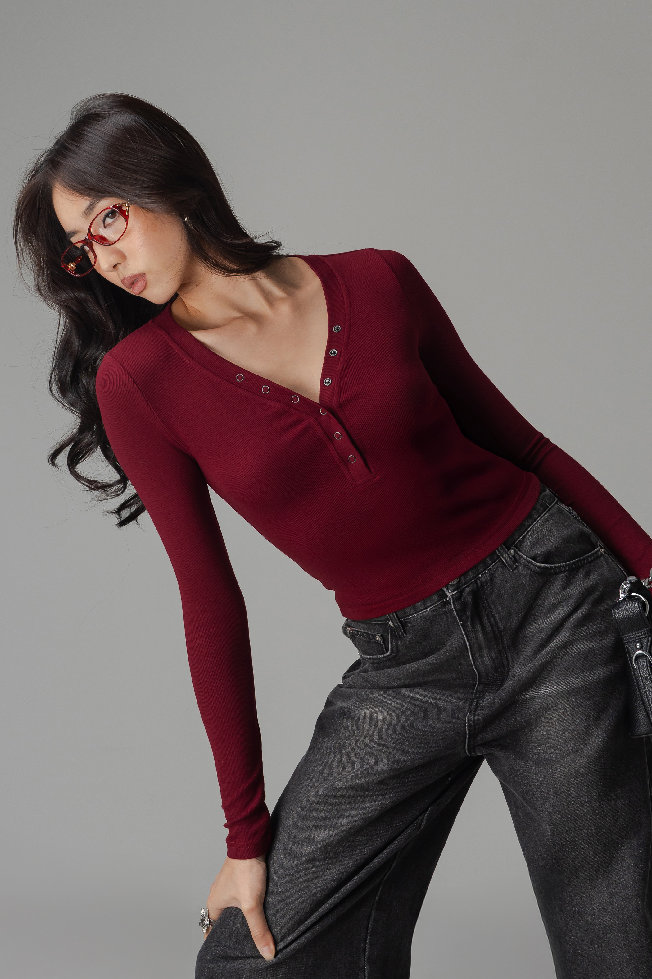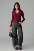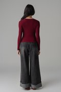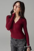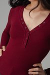 Featherlight Button Sleeve Top In Deep Red