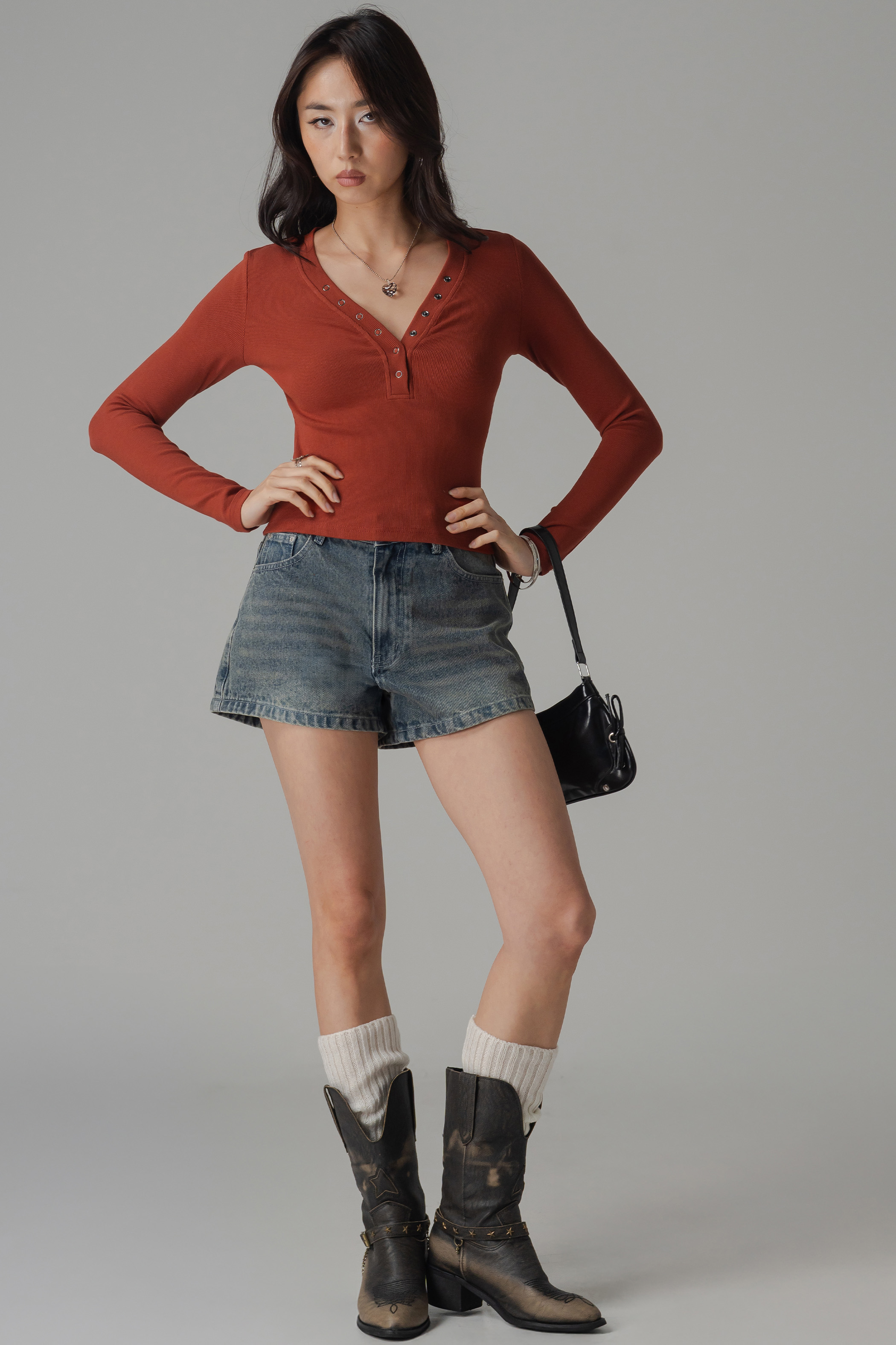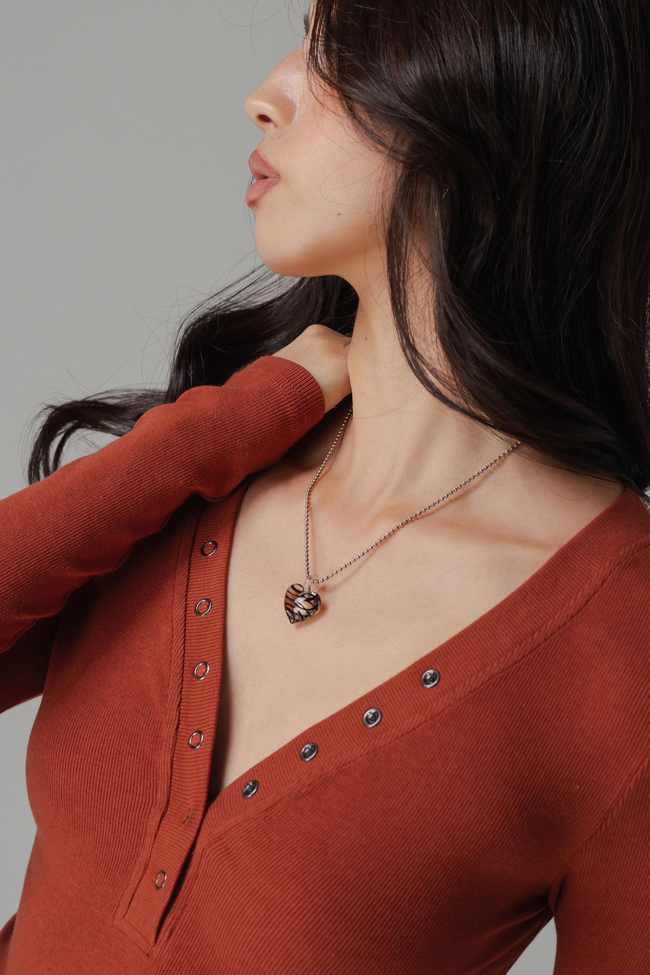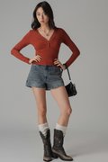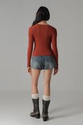 Featherlight Button Sleeve Top In Burnt Orange