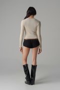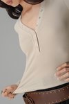 Featherlight Button Sleeve Top In Pale Beige