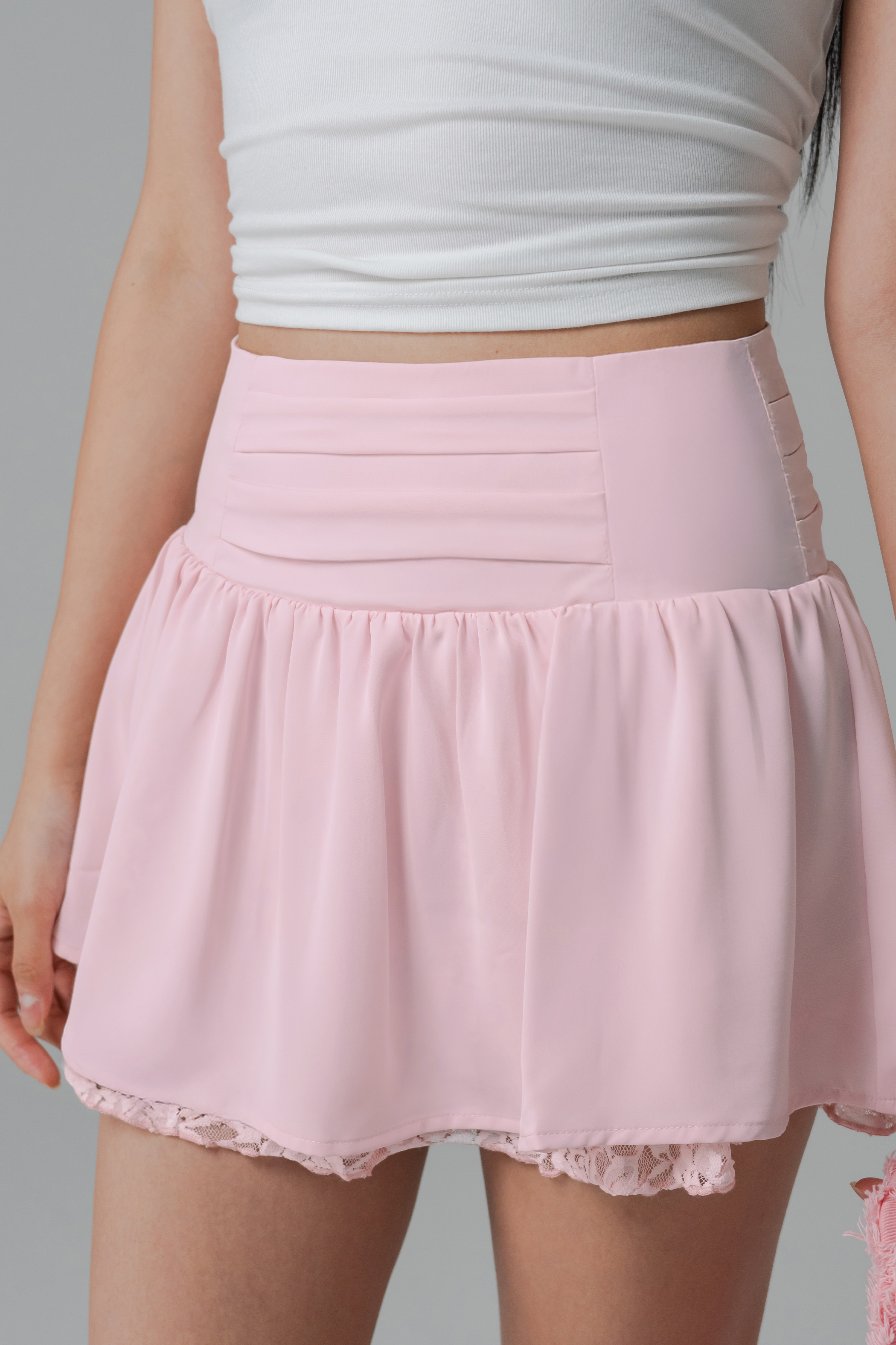 Flirt Lace Flare Mini Skirt in Cotton Pink