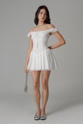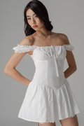 The Tangled Eyelet Dress is a feminine essential that feels both effortless and refined. It features a fitted bodice with a flared mini silhouette, offering a comfortable fit that moves with you. The floral eyelet detailing adds a soft, romantic touch.