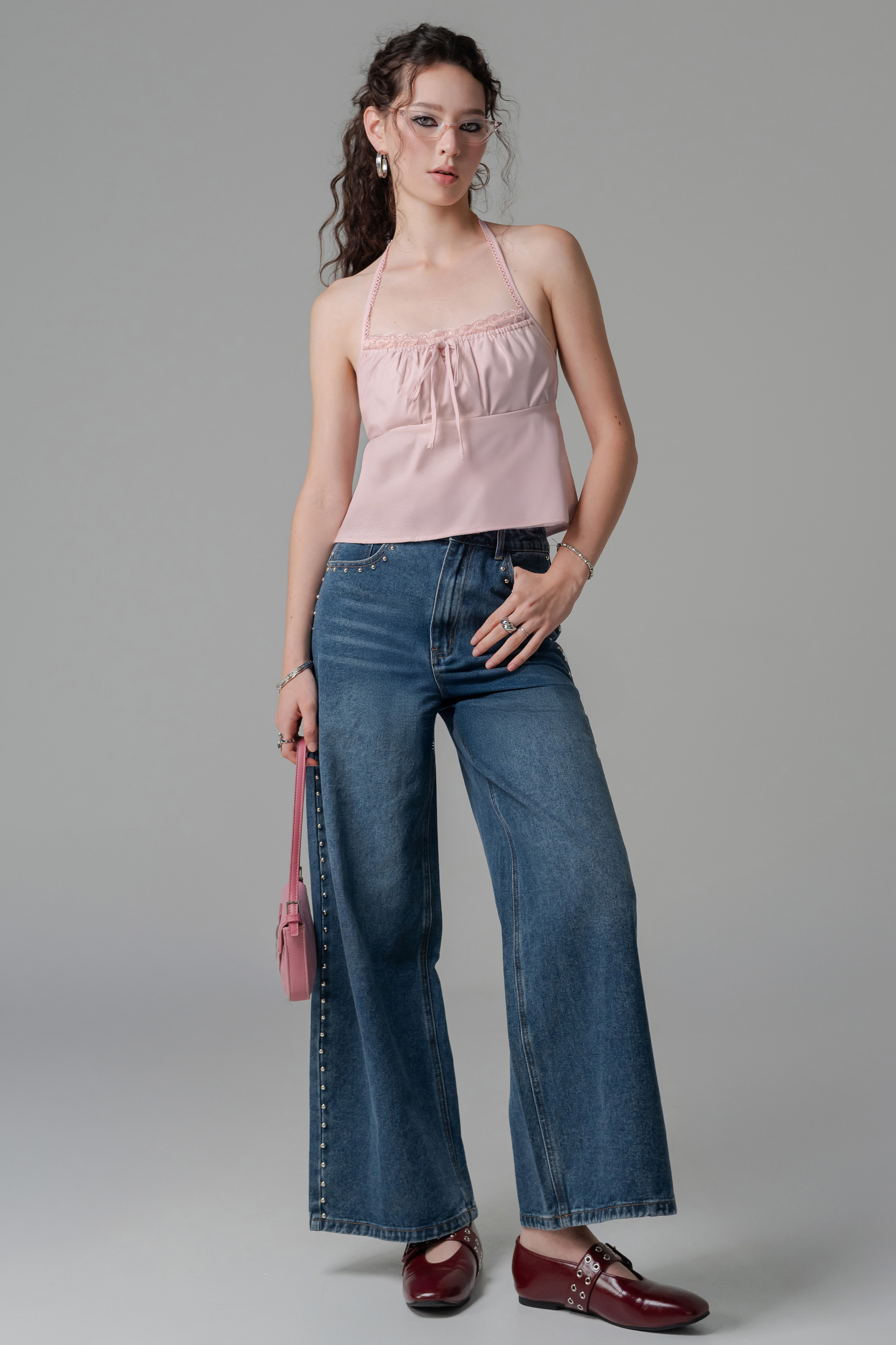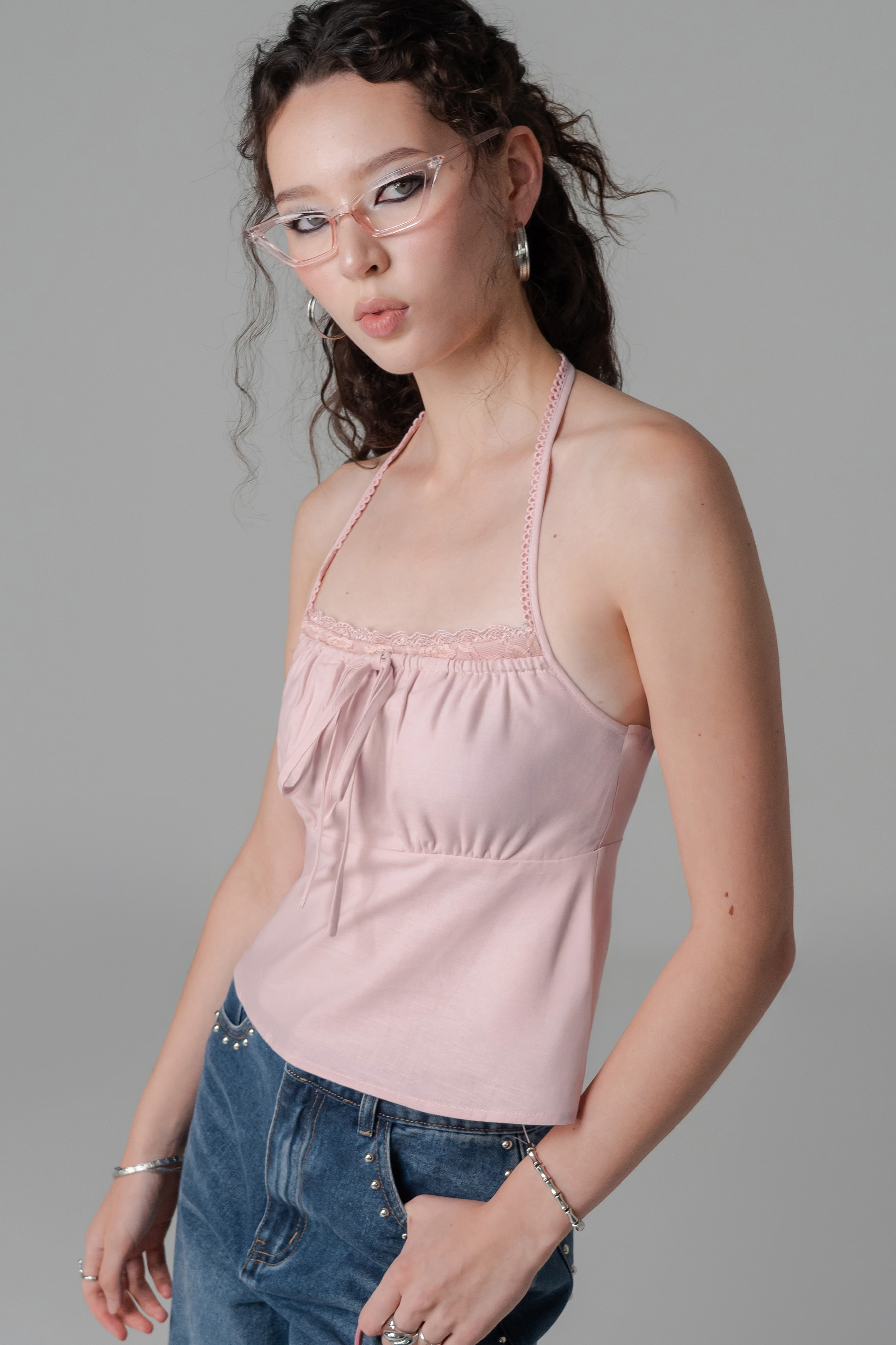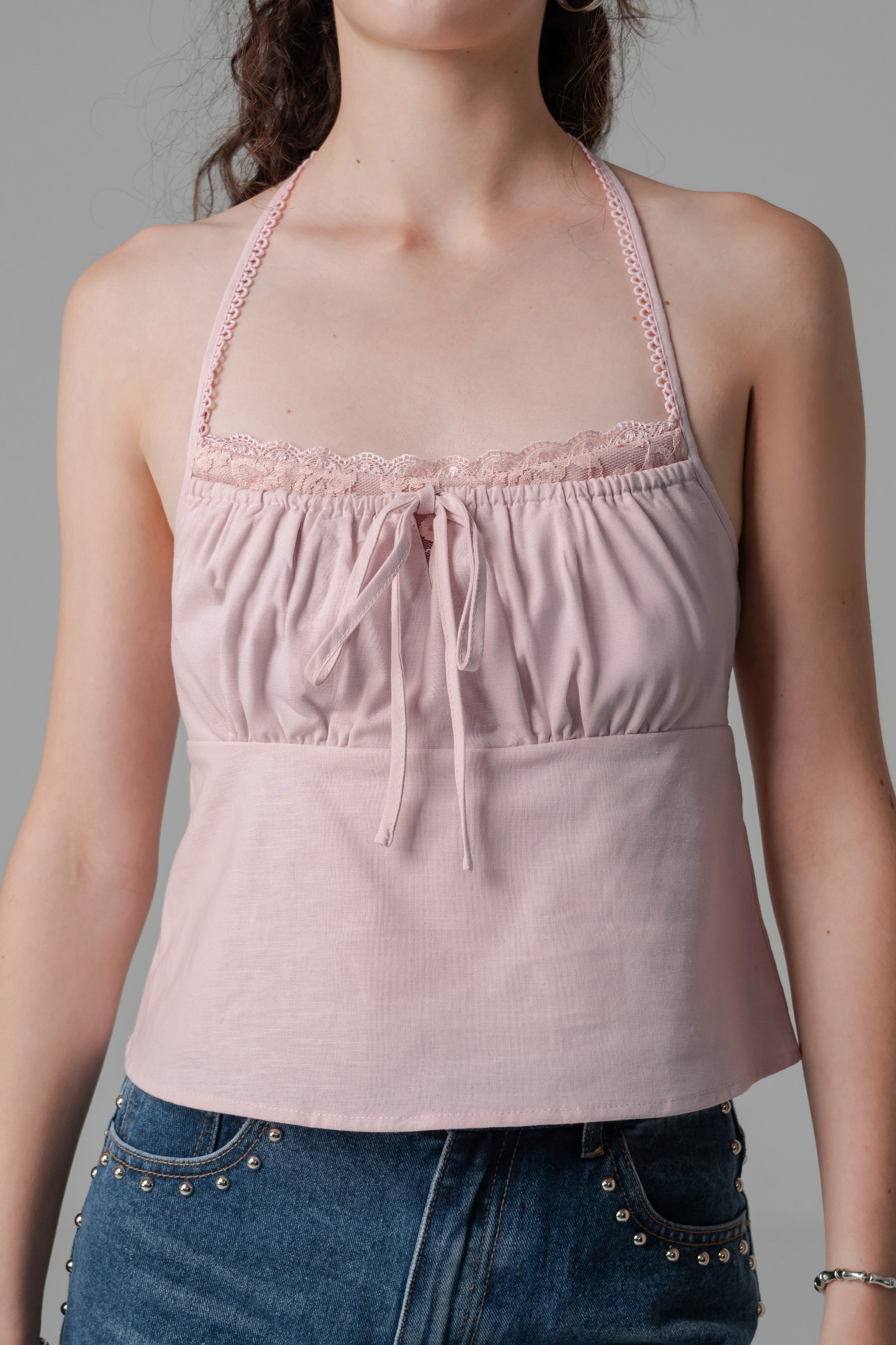 With its halter tie-neck and lace-trimmed neckline, the Habitat Ribbon Laced Top captures a soft, romantic feel. The front ribbon accent and flared silhouette add effortless charm, making it a sweet, versatile pick for holidays or everyday wear.