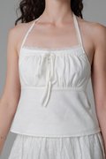 With its halter tie-neck and lace-trimmed neckline, the Habitat Ribbon Laced Top captures a soft, romantic feel. The front ribbon accent and flared silhouette add effortless charm, making it a sweet, versatile pick for holidays or everyday wear.