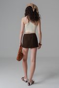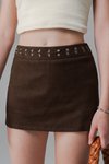 Key Hold Eyelet Suede Skirt in Chocolate Brown