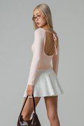 The Lumbar Tie Back Sleeve Top pairs a sleek boat neck with a cropped, fitted cut — classic in front, boldly backless with a tie detail at the back. Padded for comfort and styled with edge, it’s an easy pick for days you want something simple yet striking.