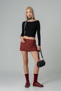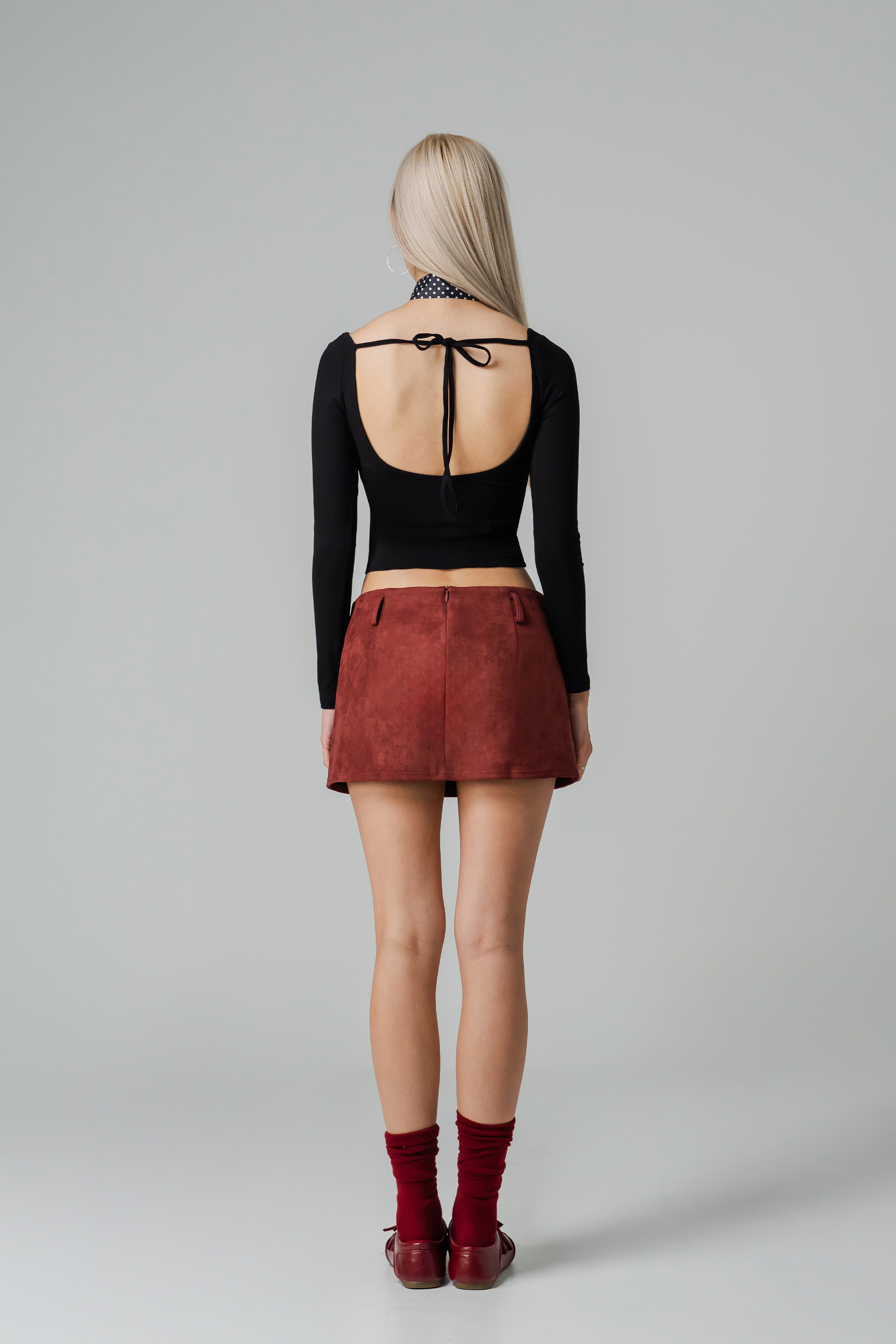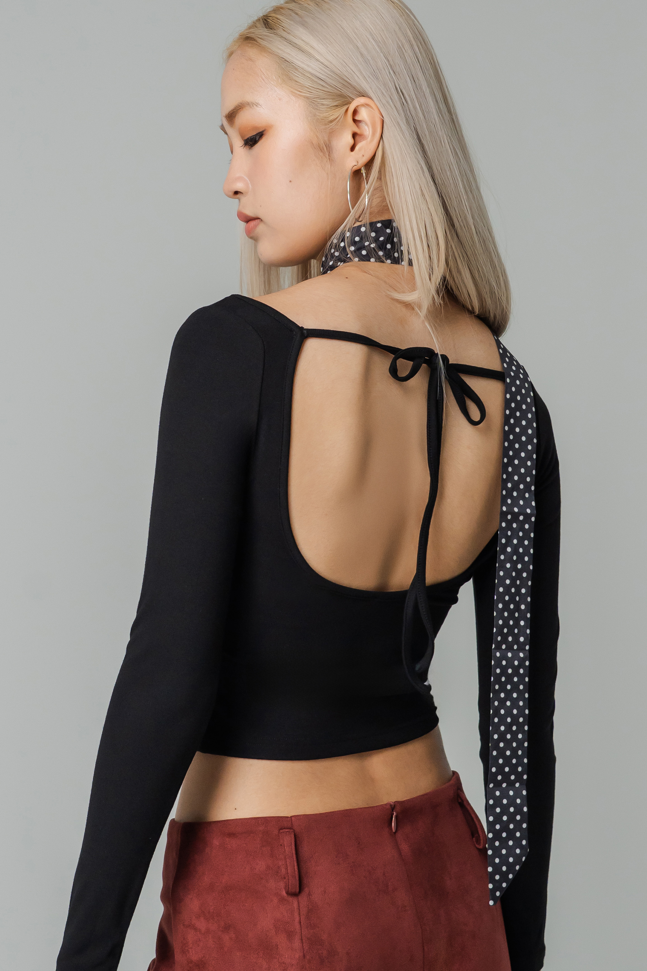 The Lumbar Tie Back Sleeve Top pairs a sleek boat neck with a cropped, fitted cut — classic in front, boldly backless with a tie detail at the back. Padded for comfort and styled with edge, it’s an easy pick for days you want something simple yet striking.