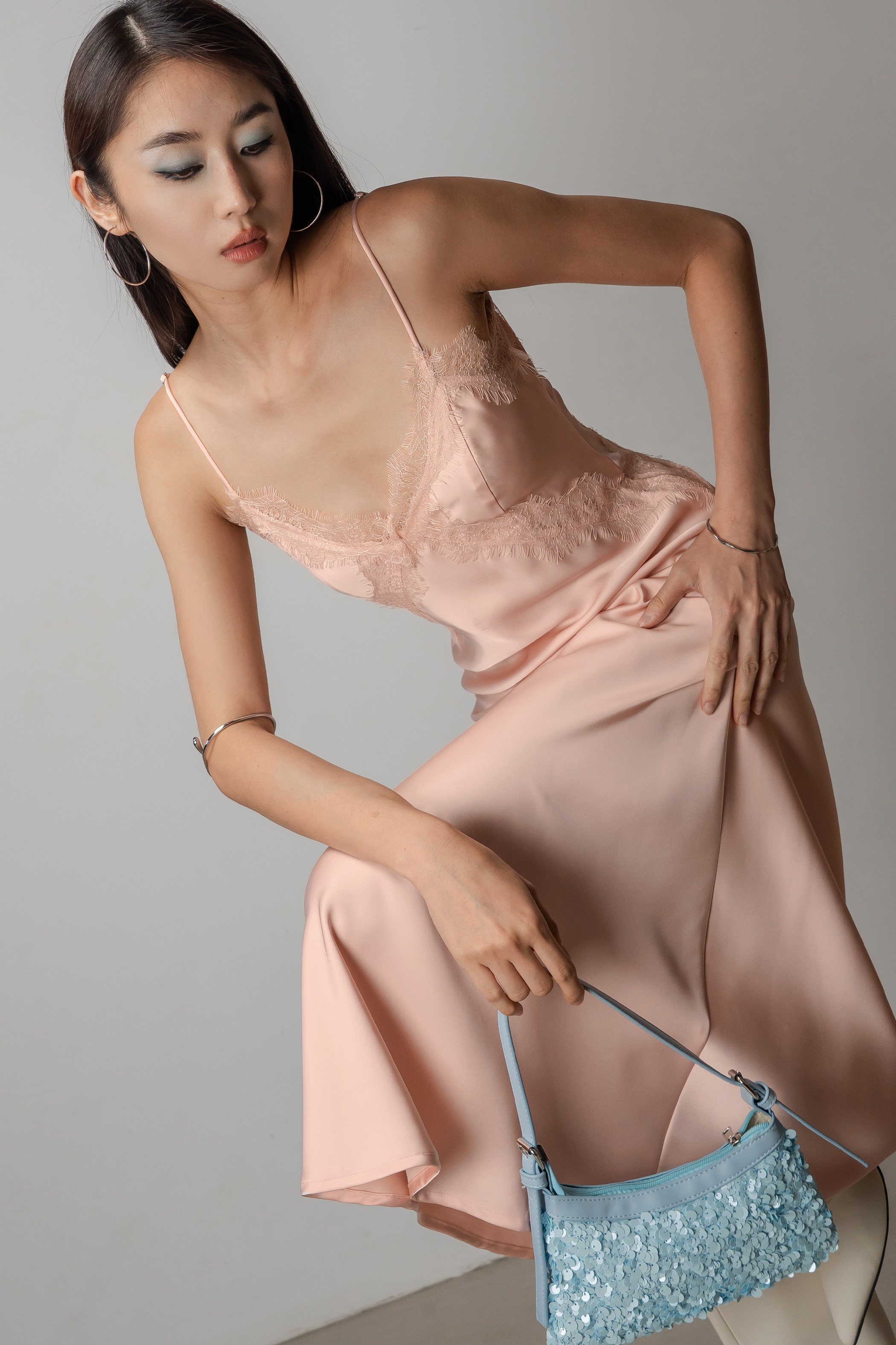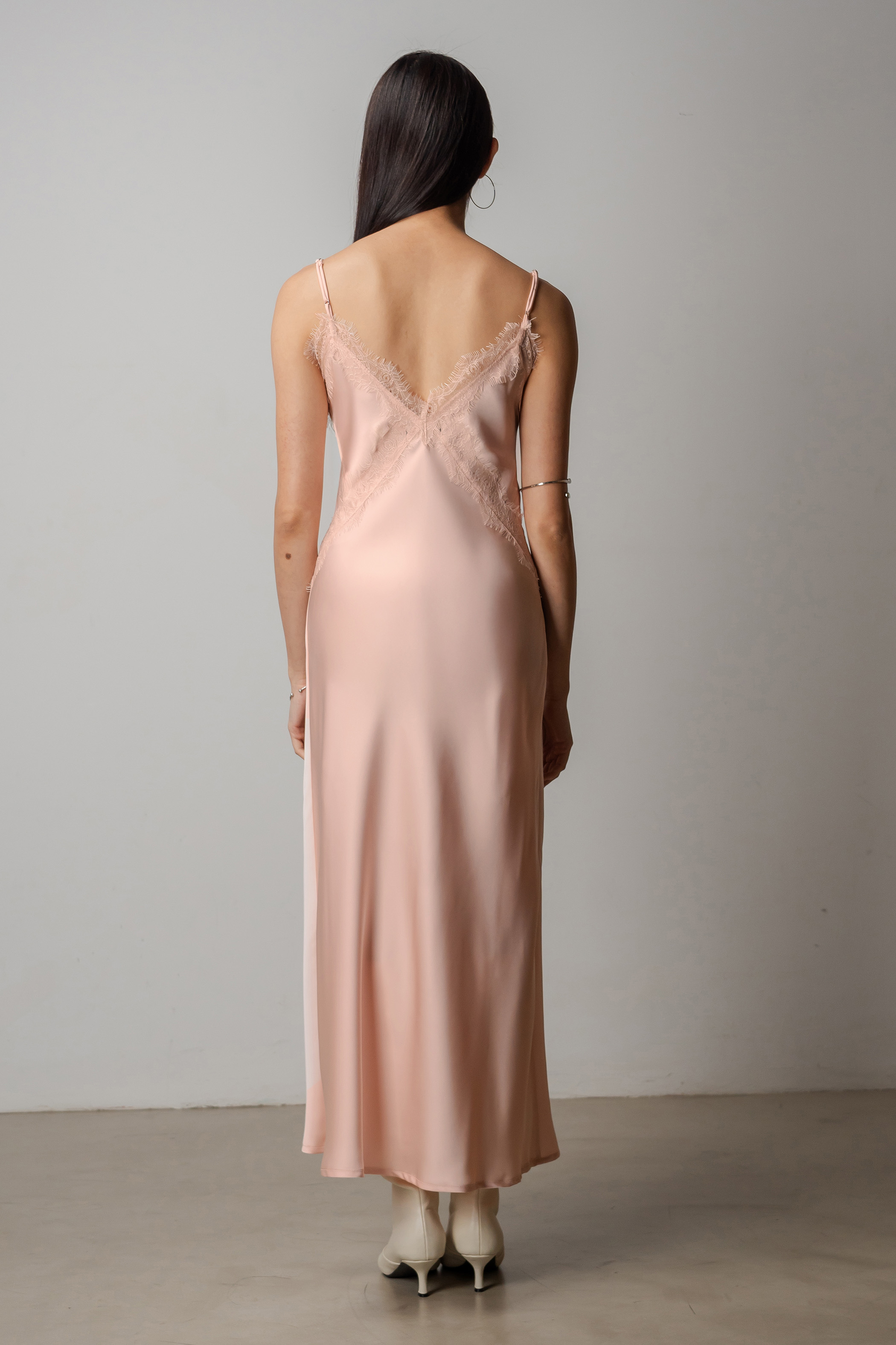 Mojo Lace Trim Maxi Dress In Shell Pink