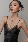 The Mojo Lace Trim Mini Dress keeps things soft and feminine — a flowy satin mini with delicate lace trim and thin straps for an effortlessly chic look. Lightweight and comfortable, it blends a cozy feel with a graceful, flattering silhouette.