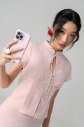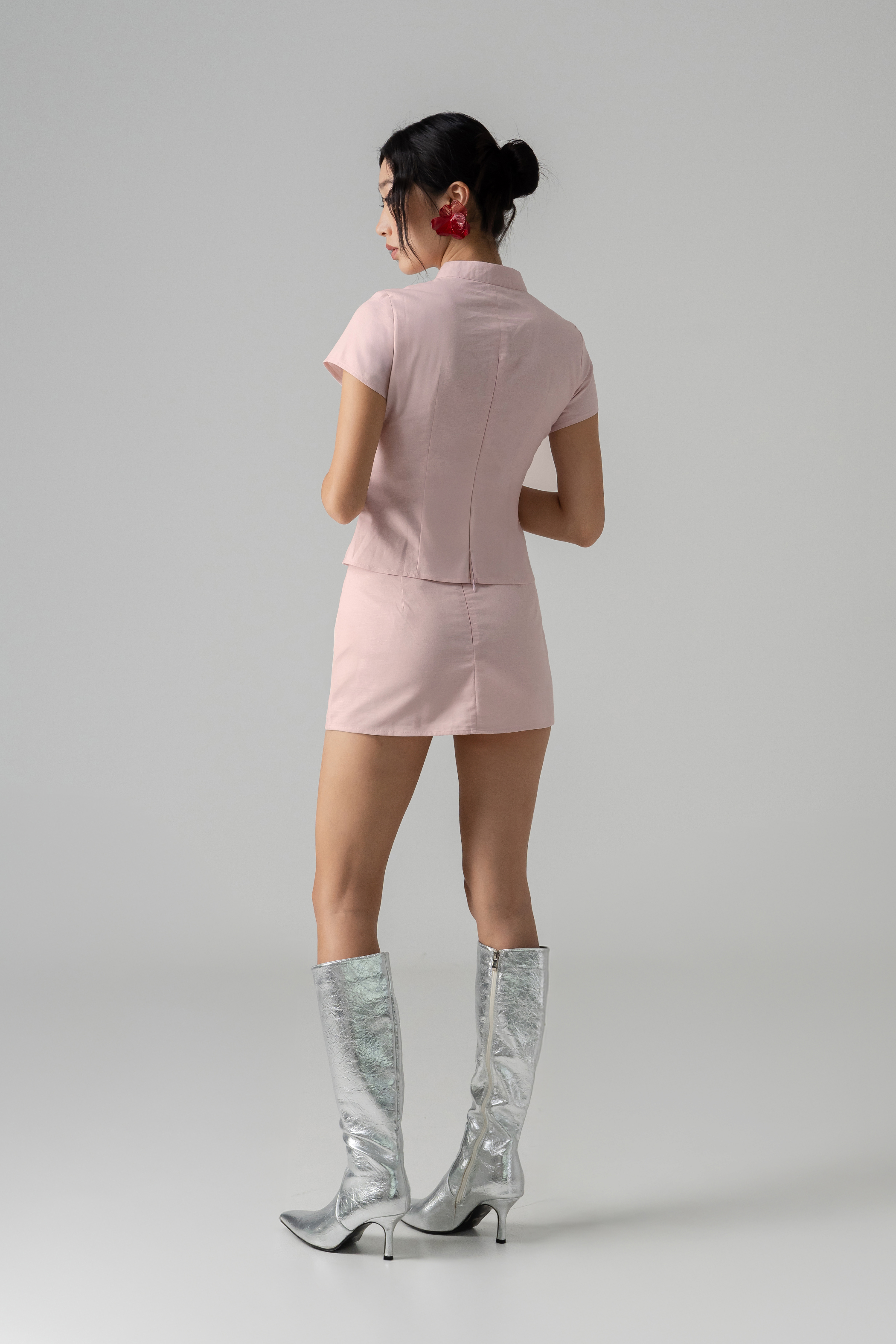 Thoughtfully tailored with a collared neckline and gentle pleats, the Paraph Pleated Linen Top brings structure with a breezy touch. Front buttons and a fitted, padded finish refine the look, especially when worn with the Perceive Linen Skirt. A versatile festive basic that slips effortlessly between lounge and polished styling.