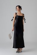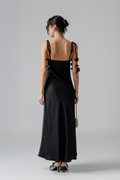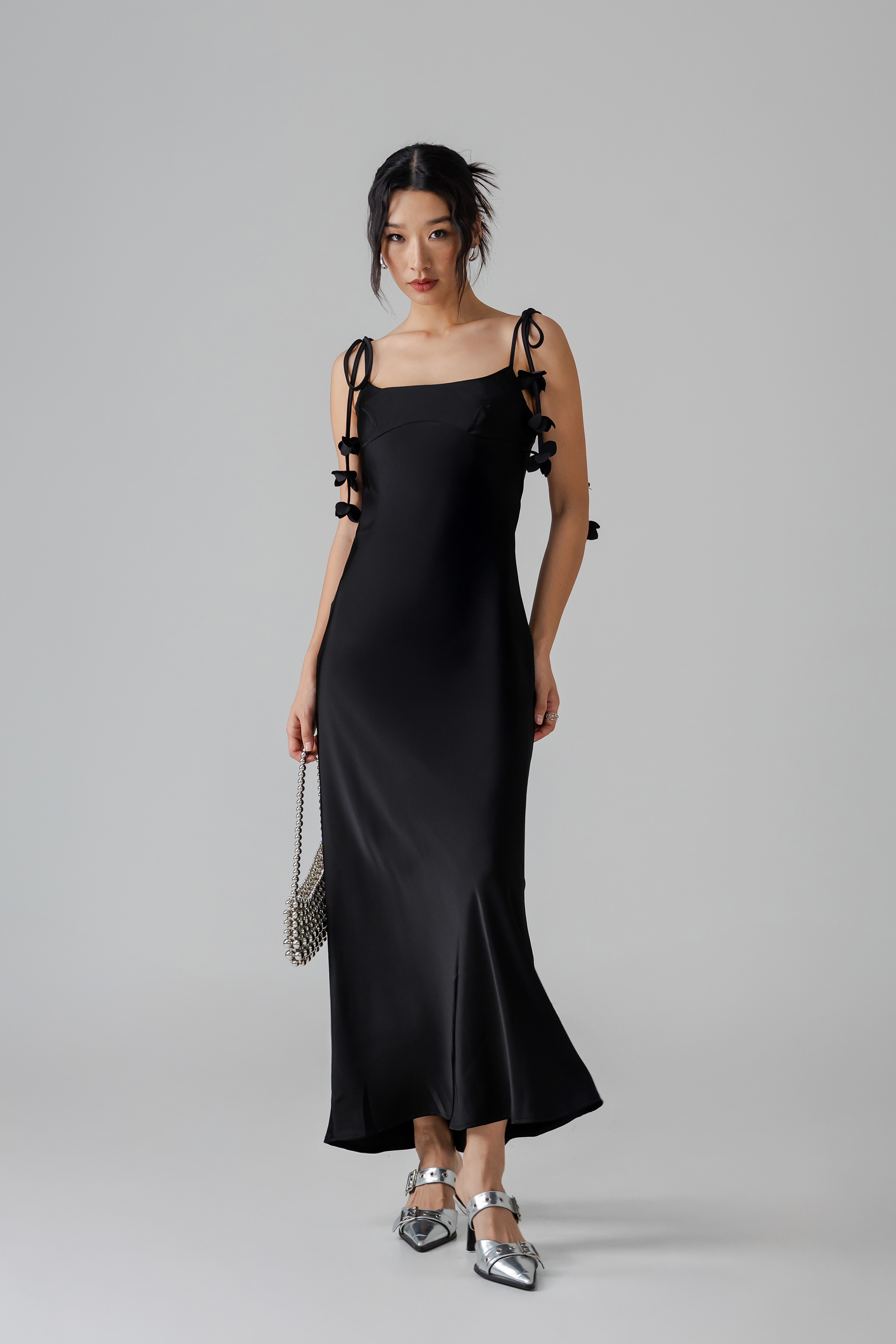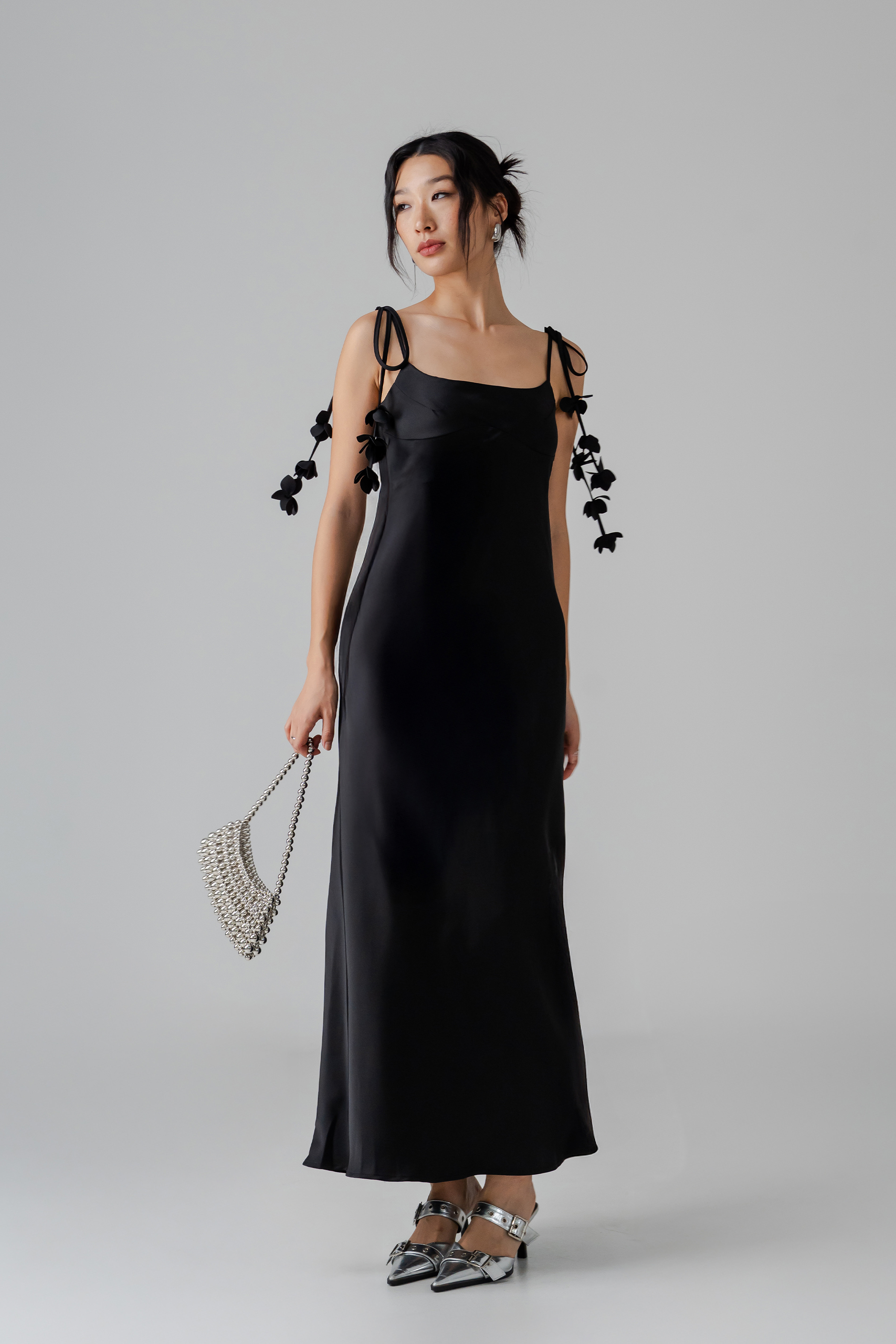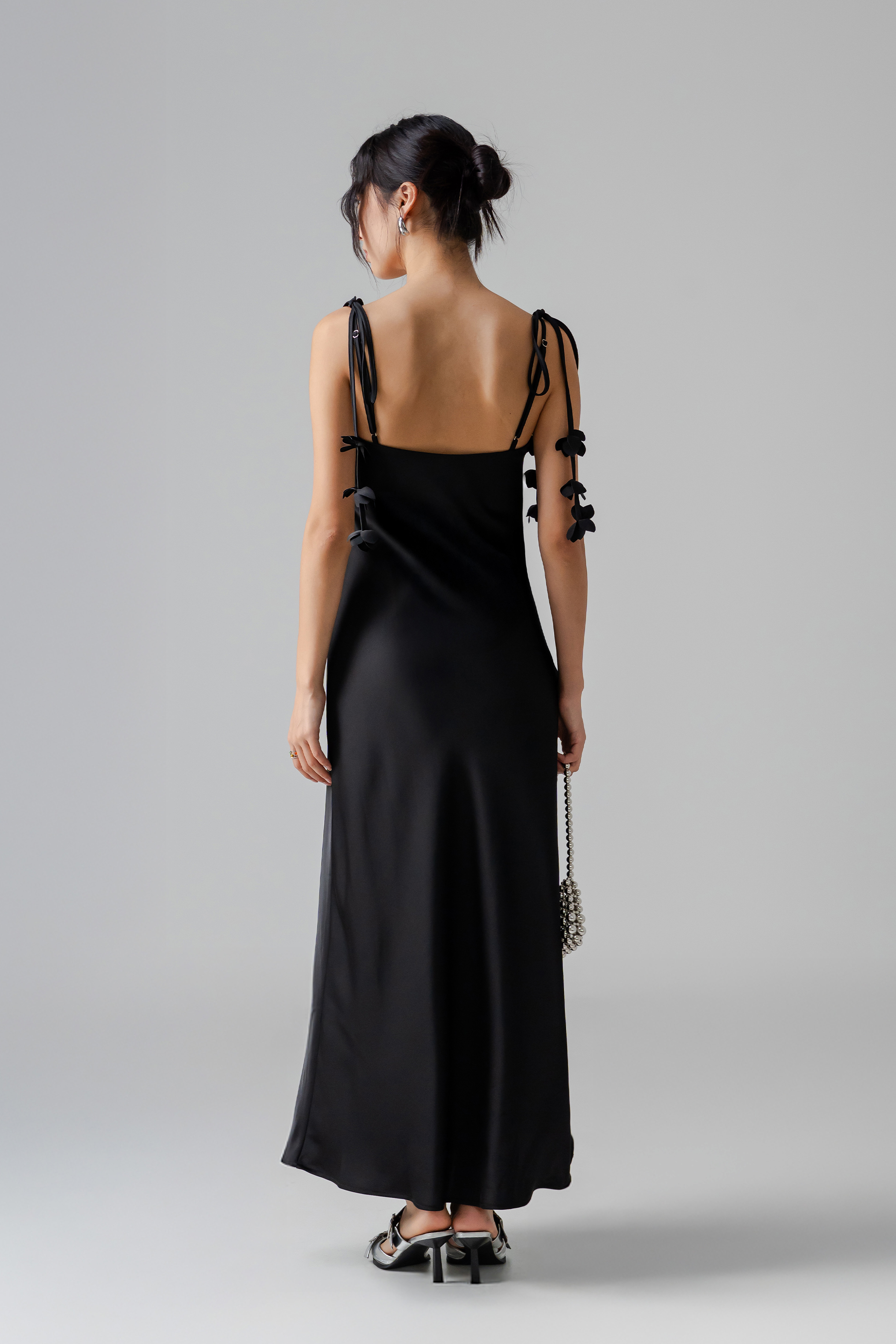Soft satin glides effortlessly in the Petal Satin Maxi Dress, with petal straps that float with every step. Its flowy shape feels both dreamy and luminous, a standout for festive gatherings with a touch of bold elegance. A piece made to turn moments into memories.
