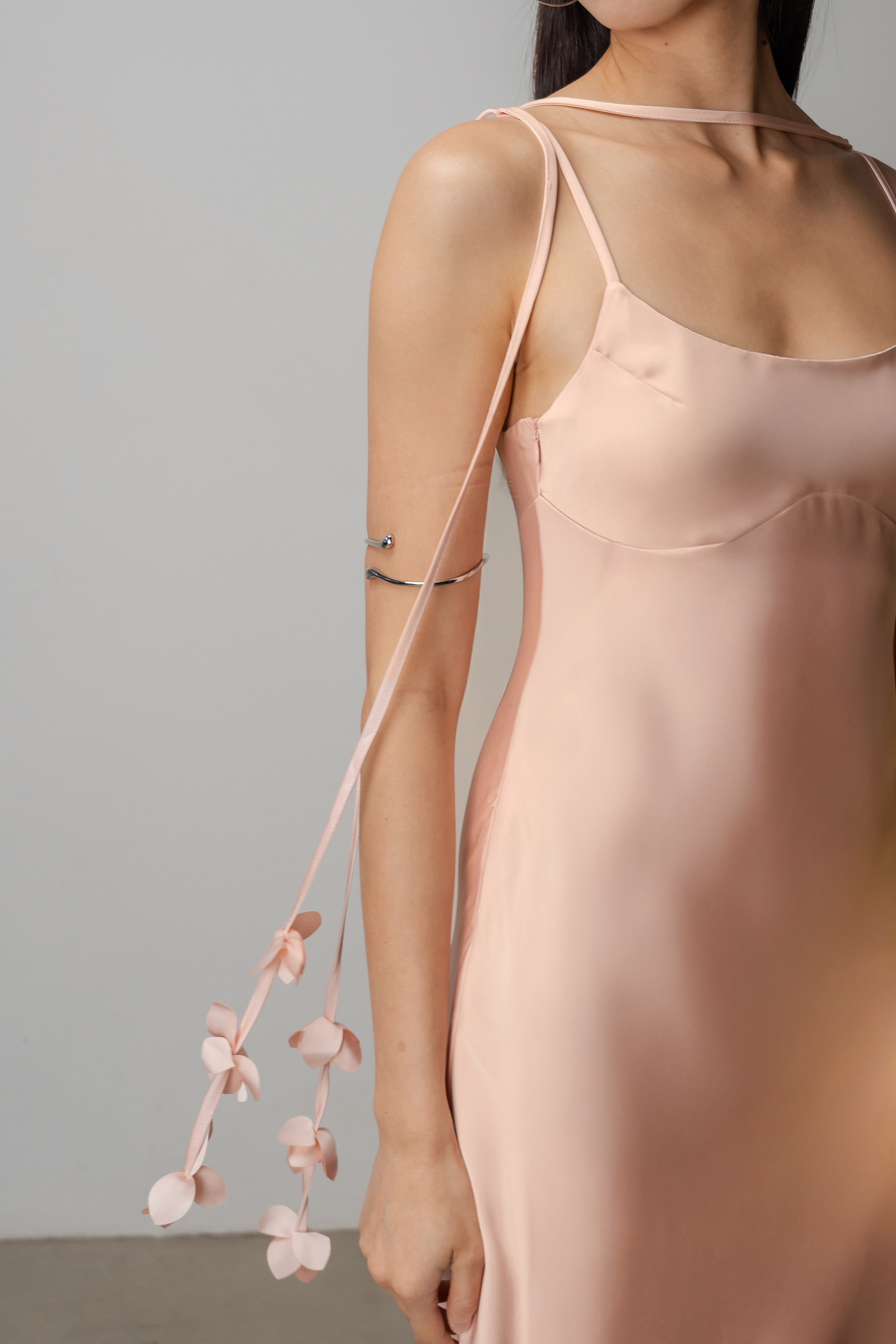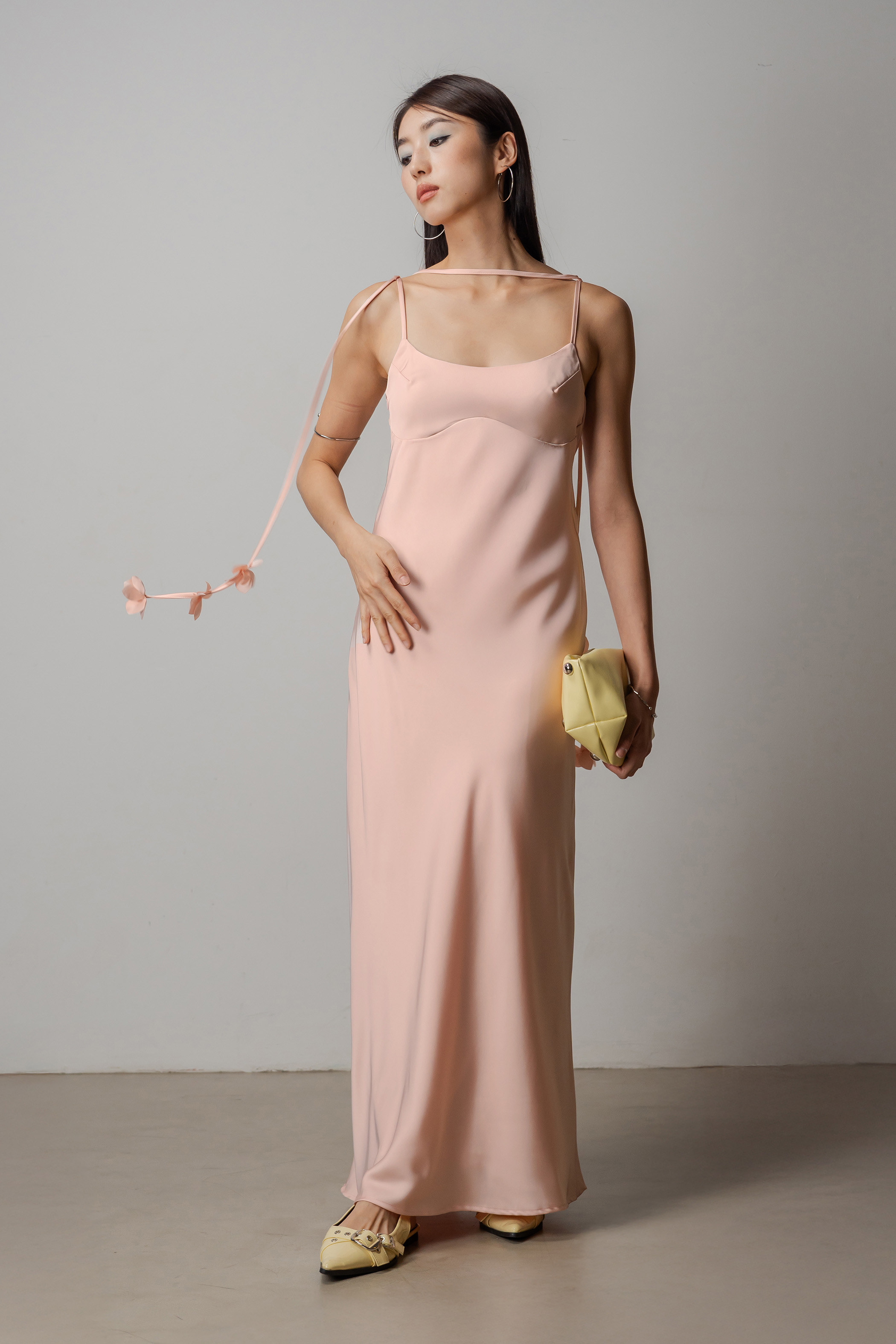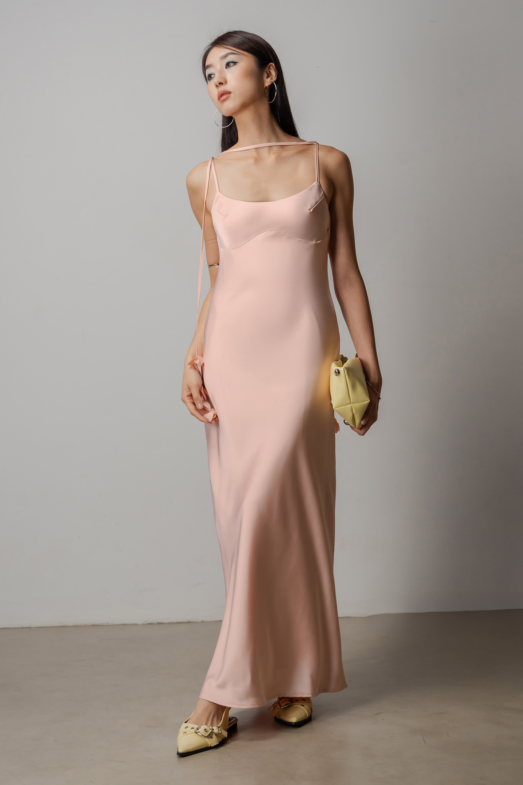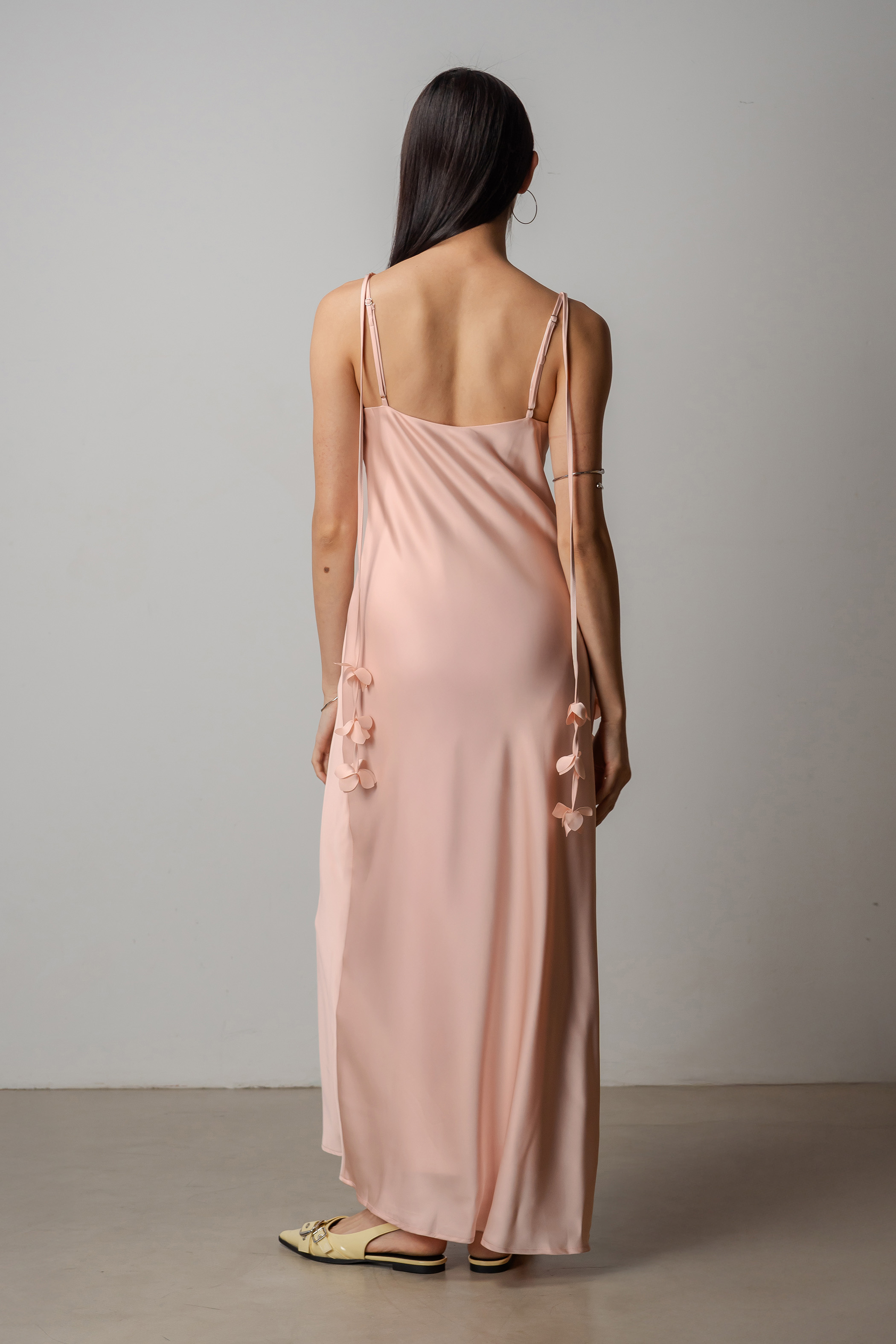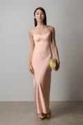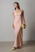Petal Satin Maxi Dress In Shell Pink