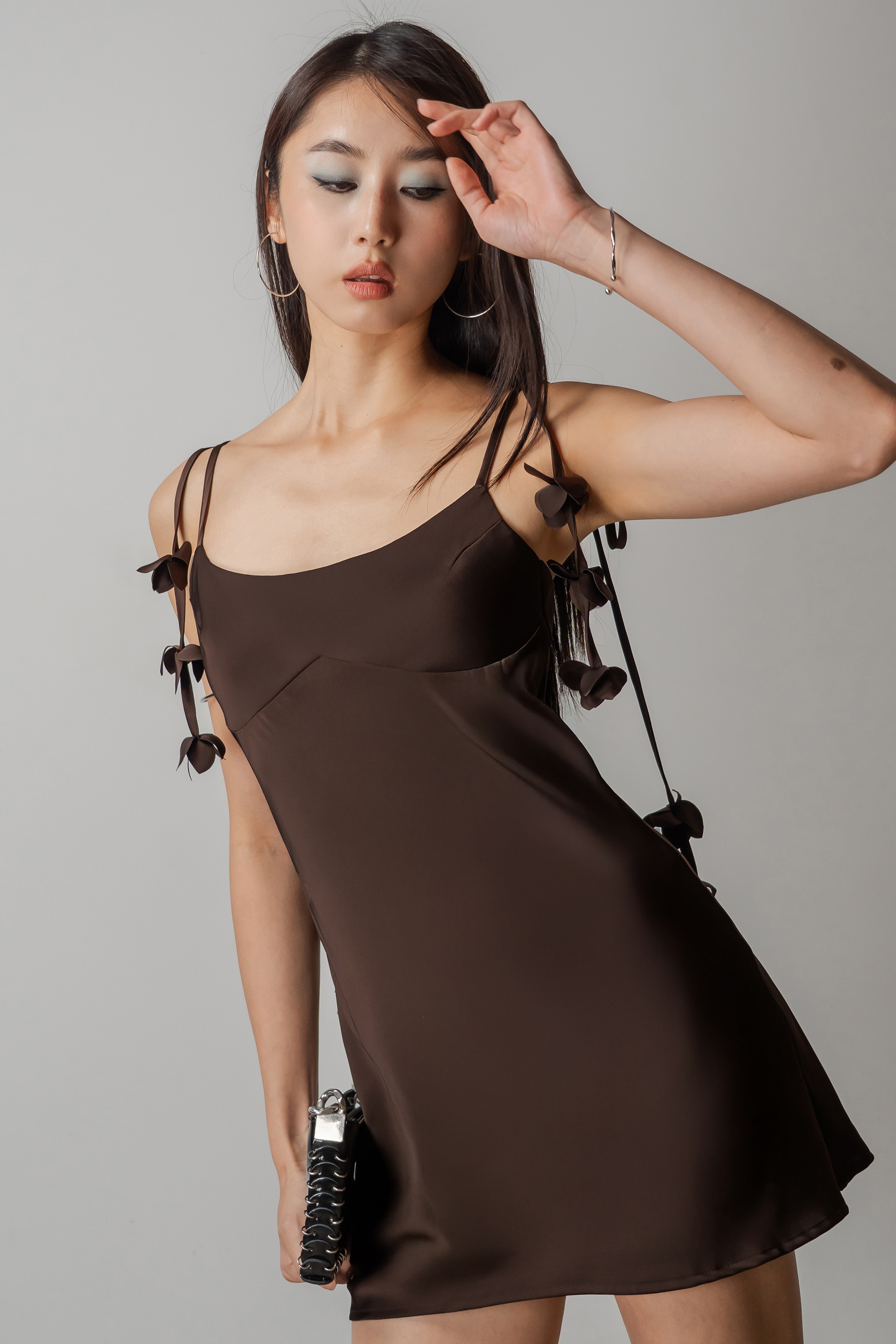 Petal Satin Mini Dress In Chocolate