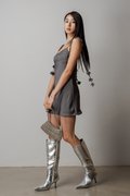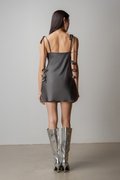 The Petal Satin Mini Dress captures the same satin romance in a flirty, playful length. Petal straps add a whimsical, ethereal note, while the flowing silhouette keeps it lively and festive. Perfect for cozy celebrations or striking day-to-night looks.