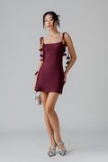 The Petal Satin Mini Dress captures the same satin romance in a flirty, playful length. Petal straps add a whimsical, ethereal note, while the flowing silhouette keeps it lively and festive. Perfect for cozy celebrations or striking day-to-night looks.