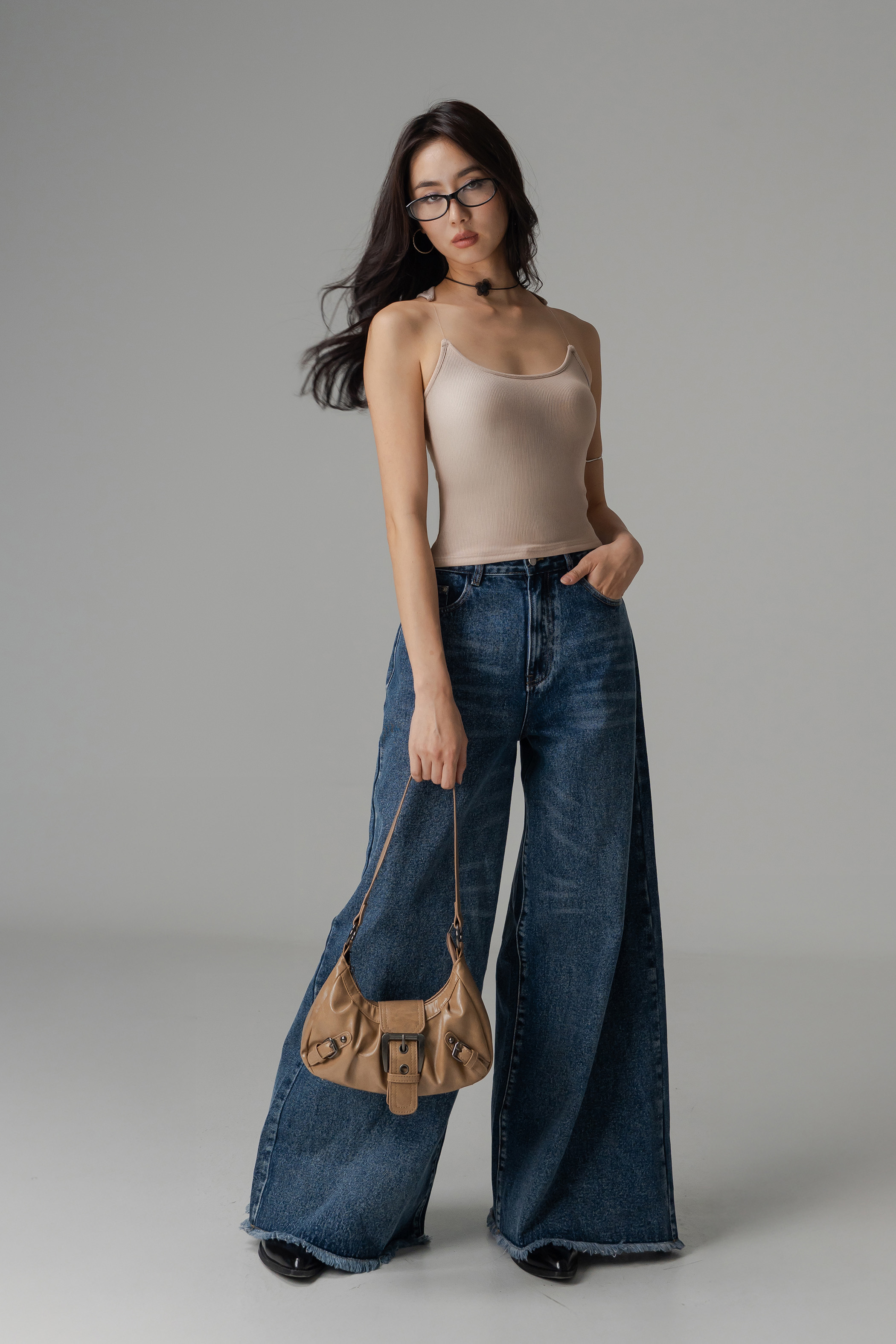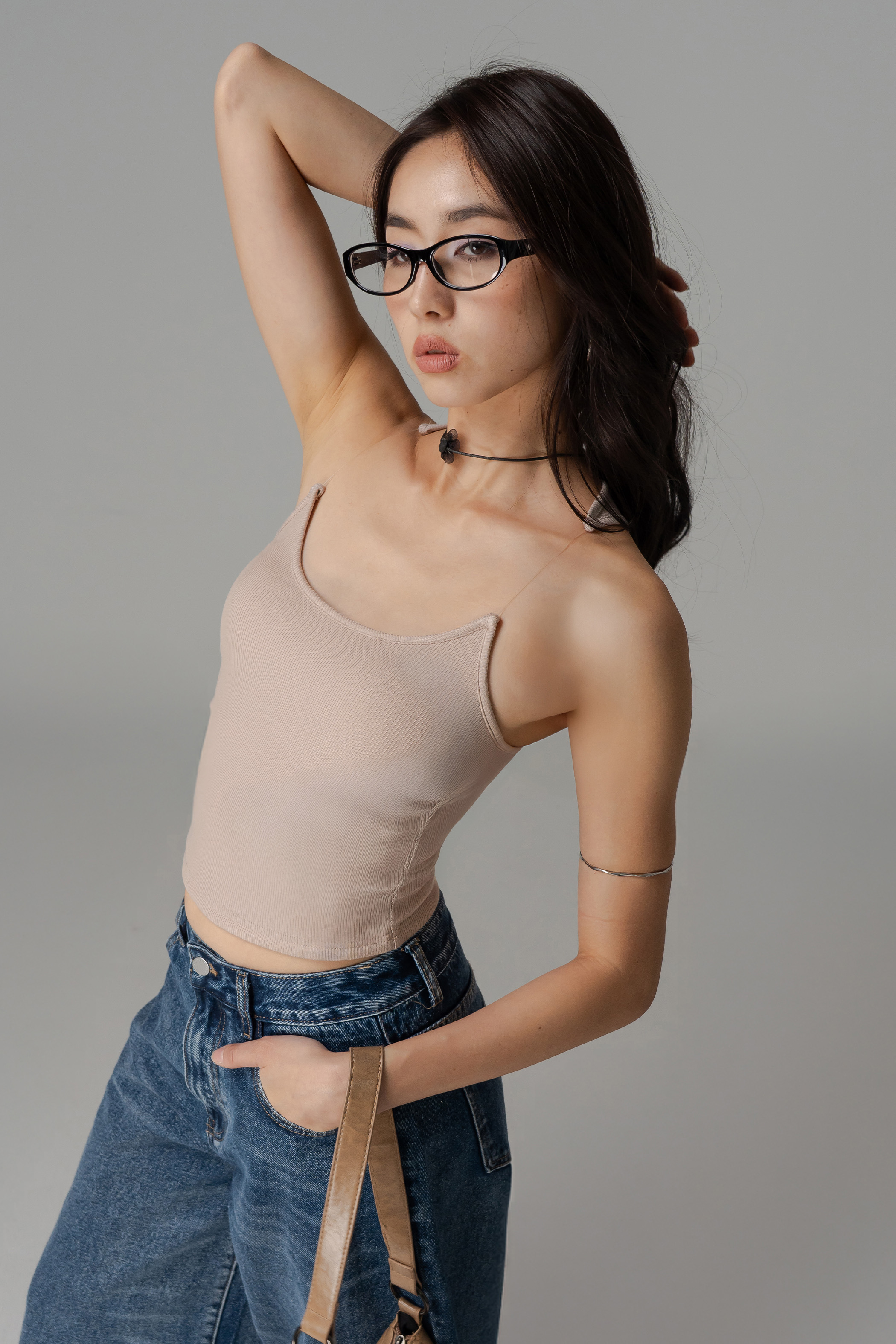 Phantom Ribbed Padded Racer Top in Sand Greige