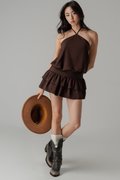 Pixie Halter Drop Waist Dress In Dark Brown