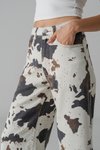 Prolonged Straight Cut Jeans in Cow Print