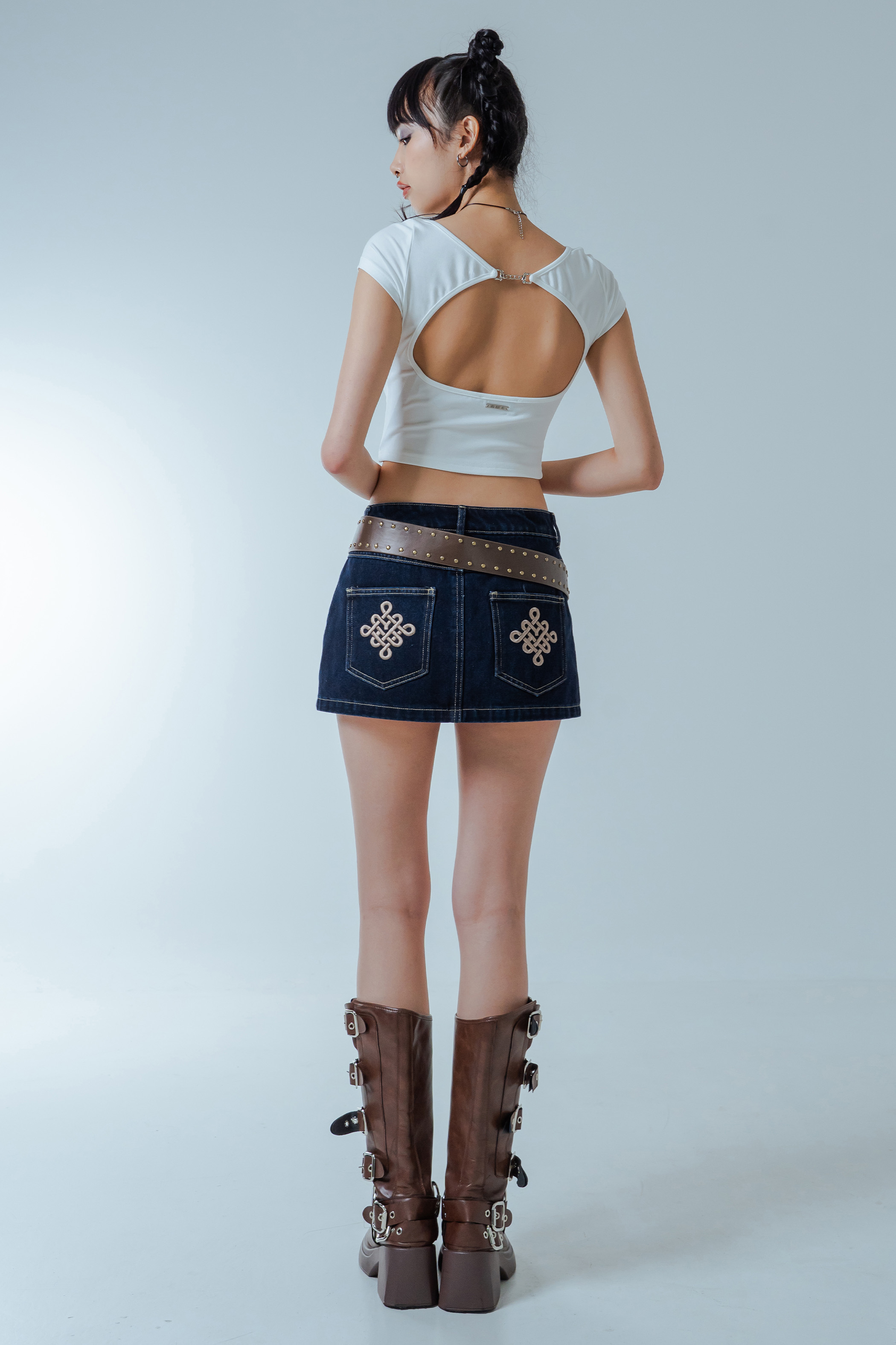 A mini made for festive moments — denim with attitude, finished with intricate Prosperous stitching on the back pocket. Its clean lines and playful length bring a youthful spark, while the crafted details add a celebratory touch. A skirt that feels both grounded and ready to shine.