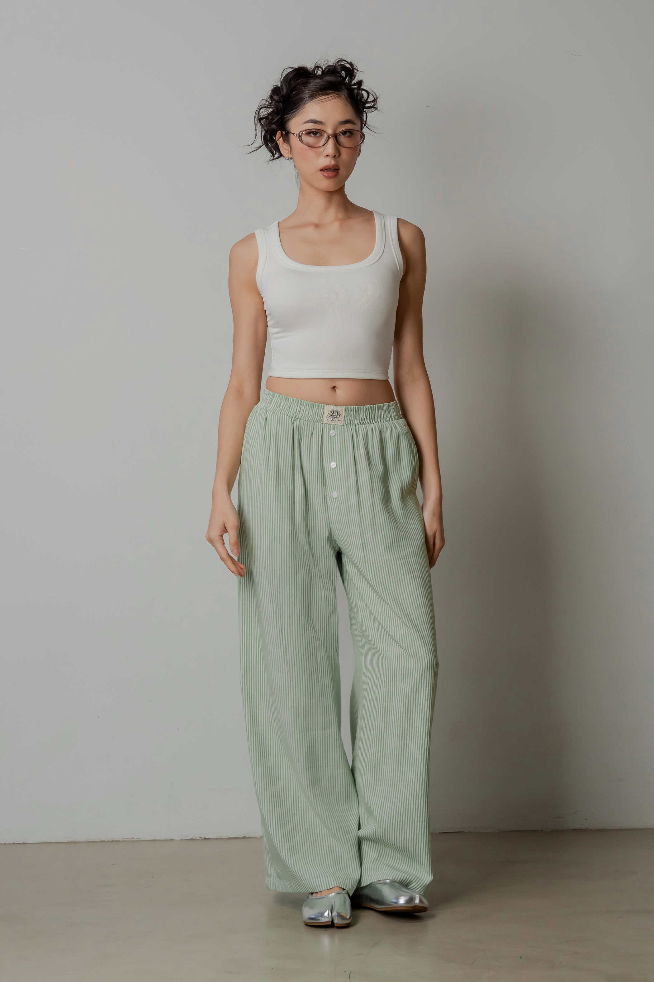 R&R Relaxed Lounge Button Pants in Apple Green Stripes