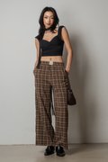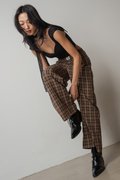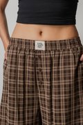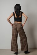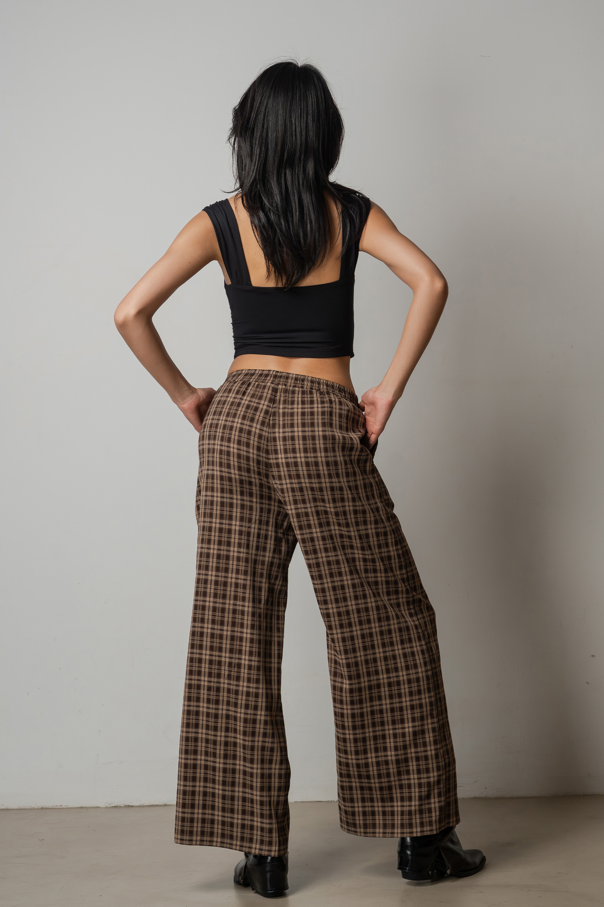 R&R Relaxed Lounge Button Pants Top in Cocoa Brown Checkered