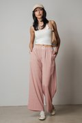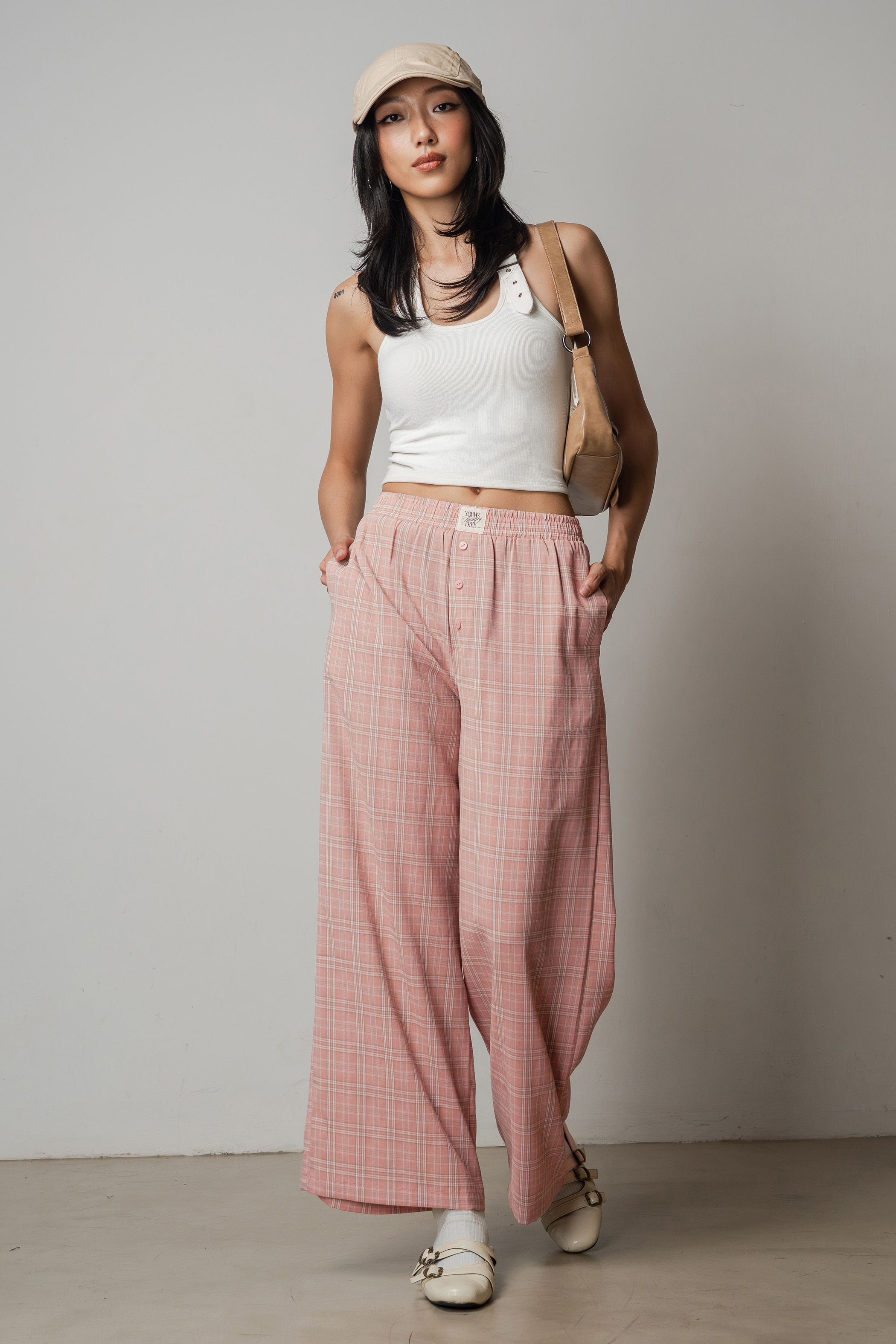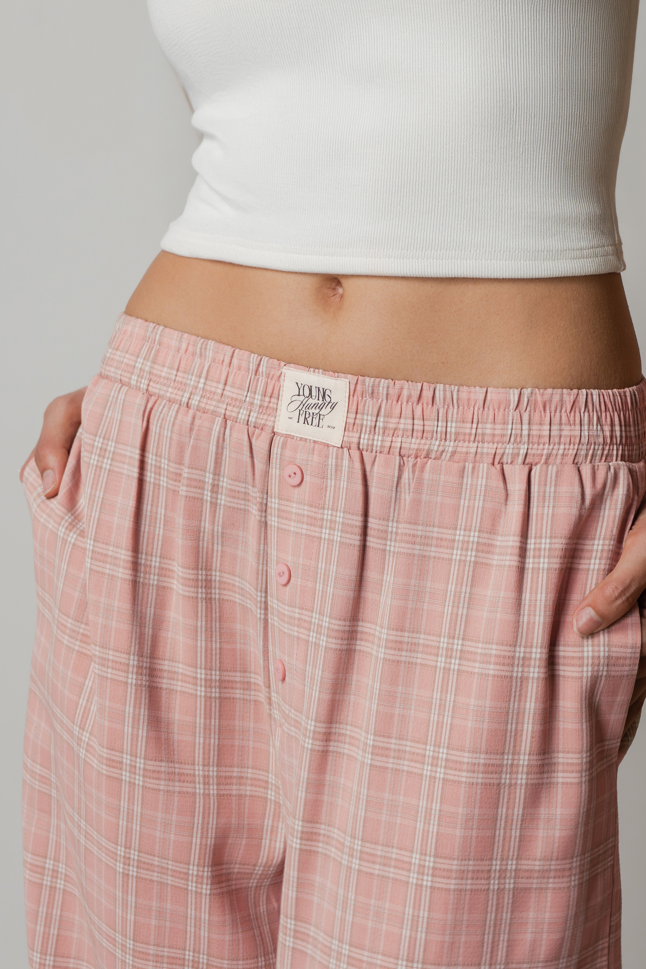 R&R Relaxed Lounge Button Pants Top in Pink Grey Checkered